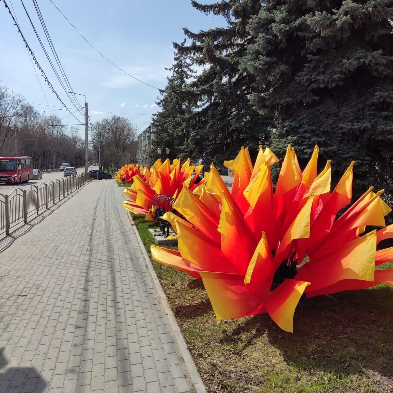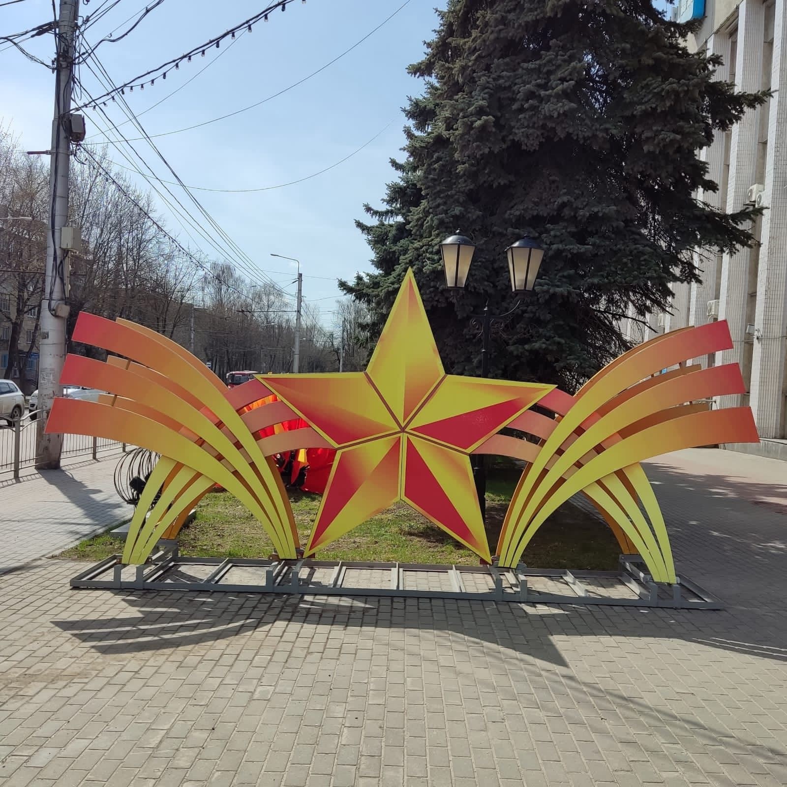 объемно-пространственные конструкции: «9 мая — С Днем Победы» на площадке у кинотеатра «Центральный», «Звезда» - у административного здания по ул.Московская, д.188, «Арка» - в сквере Краснопивцева, «Кубы» - на площадке у Дома Музыки, «Цветочное дерево» - Дома Быта, «Арка - Самолет» - СКВ.Мира, «Звезда — 9 мая» - пл.Победы, «Книга с Днем Победы» - пл.Старый Торг;