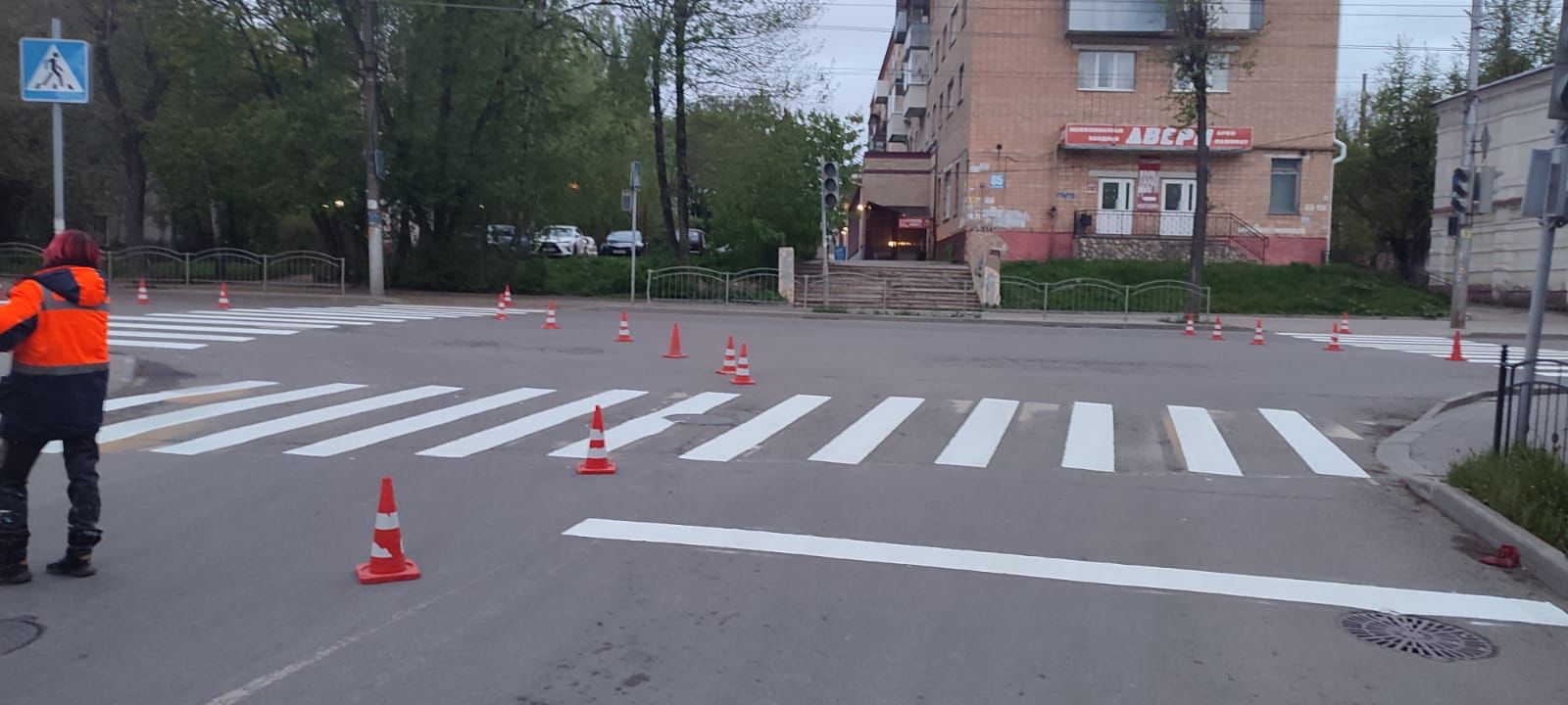 По информации управления городского хозяйства, на сегодняшний день нанесено около 5 тысяч м2 разметки на таких улицах как: Кирова, Гагарина, скв.Мира, пл.Победы.