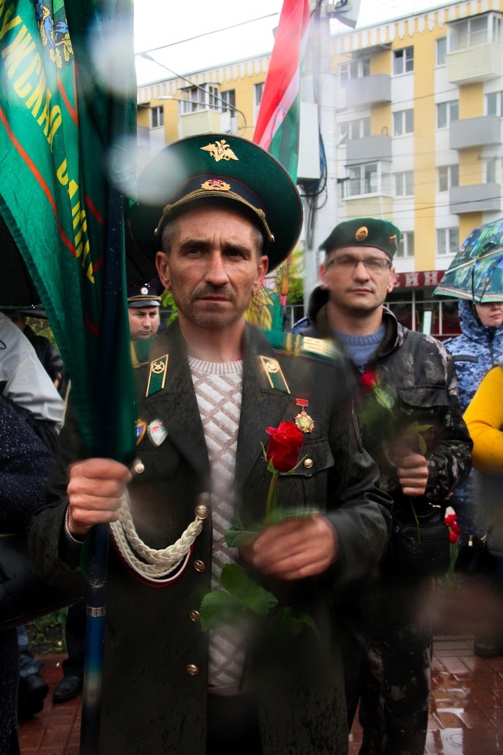 Несмотря на проливной дождь и сильный ветер, калужане объединились сегодня, чтобы вместе провести этот день, а улица Кирова вновь стала центром празднования. Калужские пограничники организованной колонной прошлись от Сквера Мира до Площади Победы.