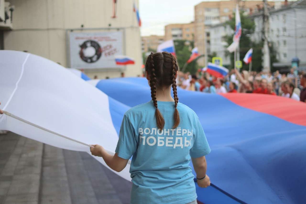 В честь праздника Дня России в Калуге участники движения "Волонтеры Победы" провели флешмоб «Я - Россия».