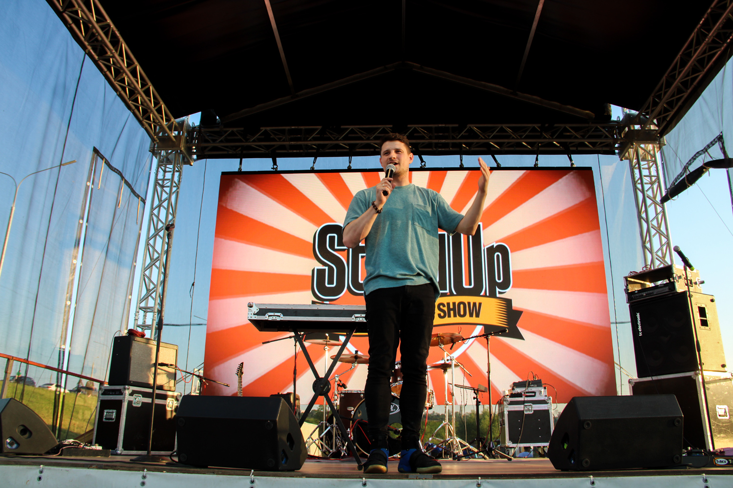 В 20:00 часов стартовала основная программа праздника. На главной сцене для калужской молодежи выступили стендап комики Алексей Кузнецов и Игорь Пименов.