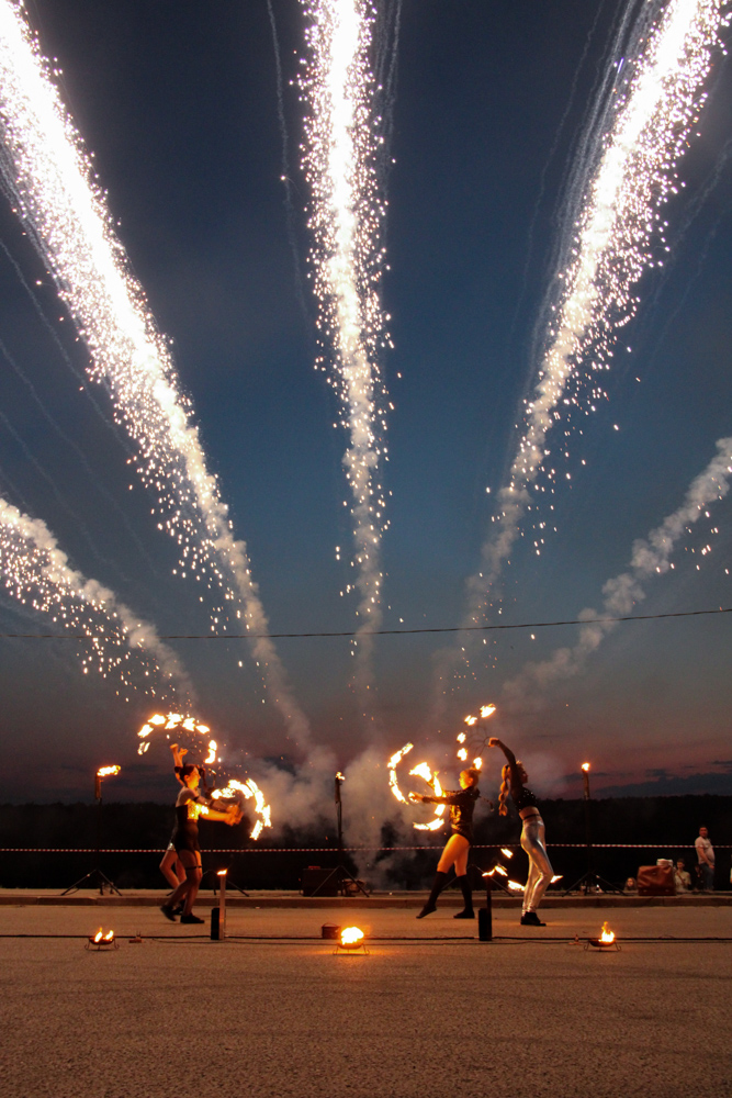 Финальной точкой для калужан стало огненное шоу на вертолетной площадке в исполнении группы «Flash Back».