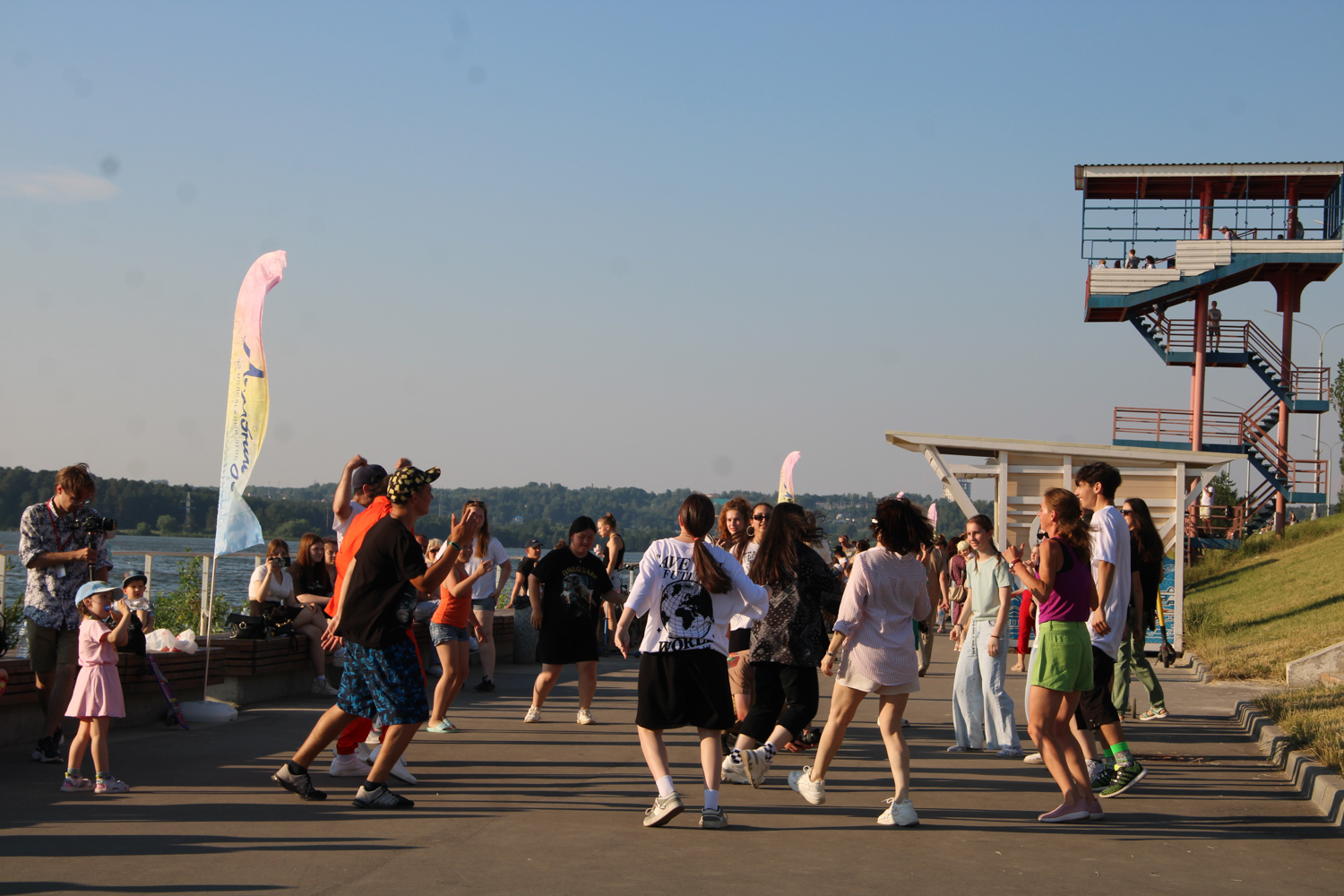 Сразу после этого на набережной начали свою работу молодежные мастер-классы. В рамках мастер-классов можно было попробовать себя в танцах или попрыгать на спортивных батутах. Программа прикладных мастер-классов дала возможность всем желающим проявить свое творчество и сделать небольшие сувениры на память.