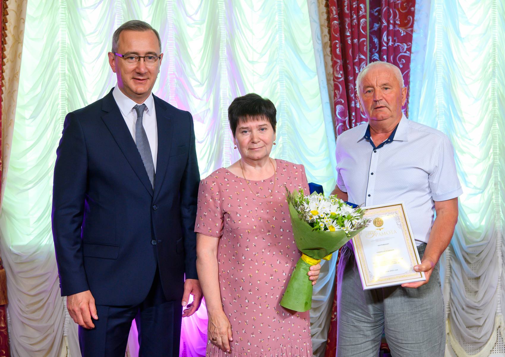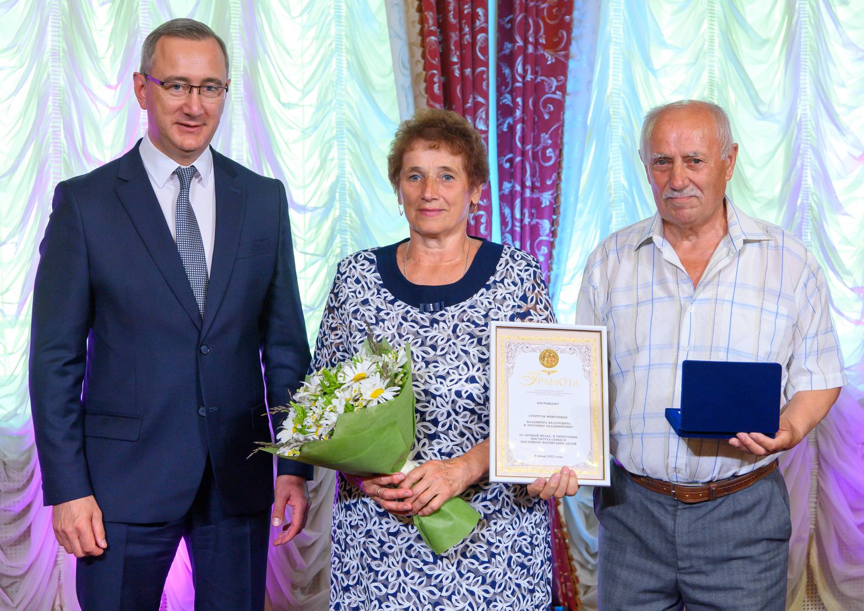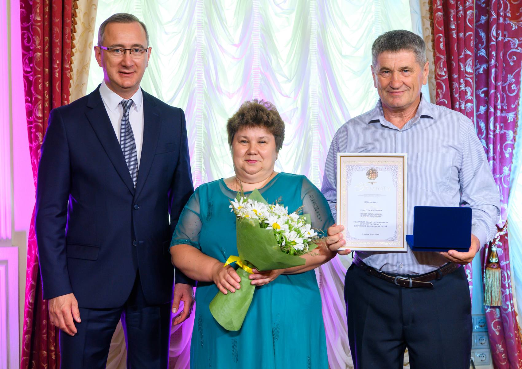За личный вклад в укрепление института семьи и достойное воспитание детей Губернатор вручил Почётные грамоты оргкомитета по проведению Дня семьи, любви и верности в Российской Федерации каждой приглашенной семейной паре.