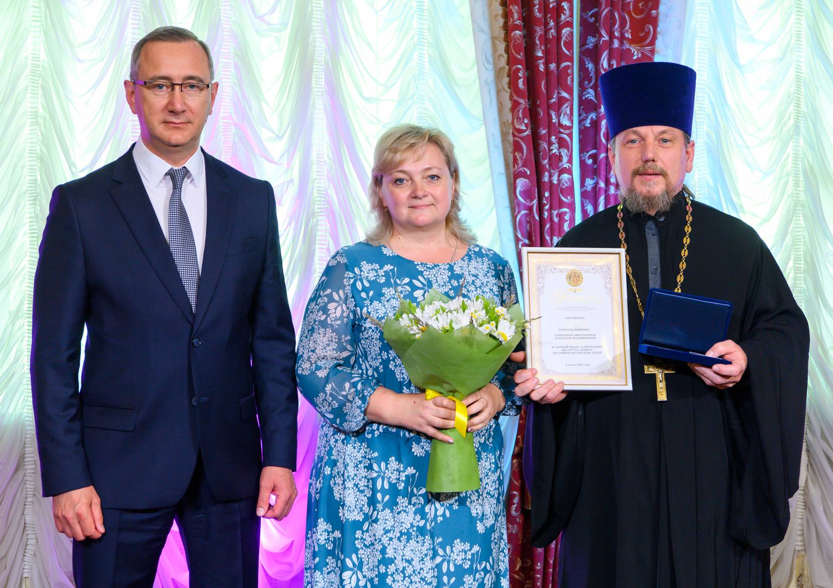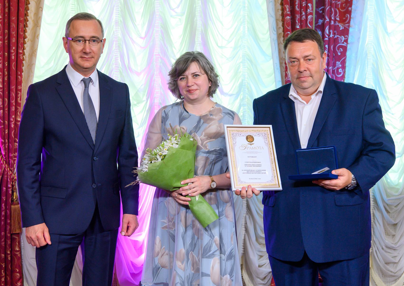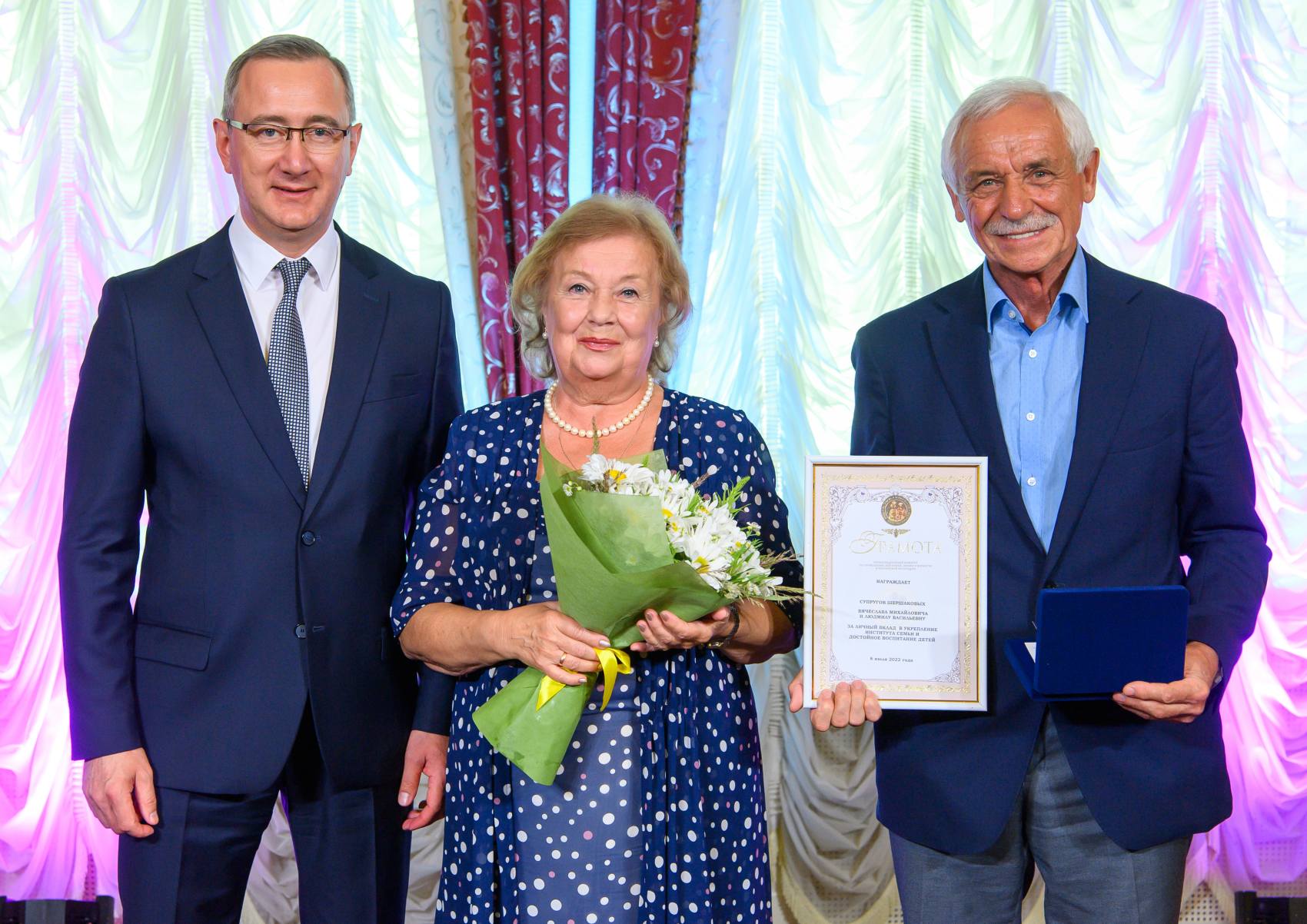 За личный вклад в укрепление института семьи и достойное воспитание детей Губернатор вручил Почётные грамоты оргкомитета по проведению Дня семьи, любви и верности в Российской Федерации каждой приглашенной семейной паре.