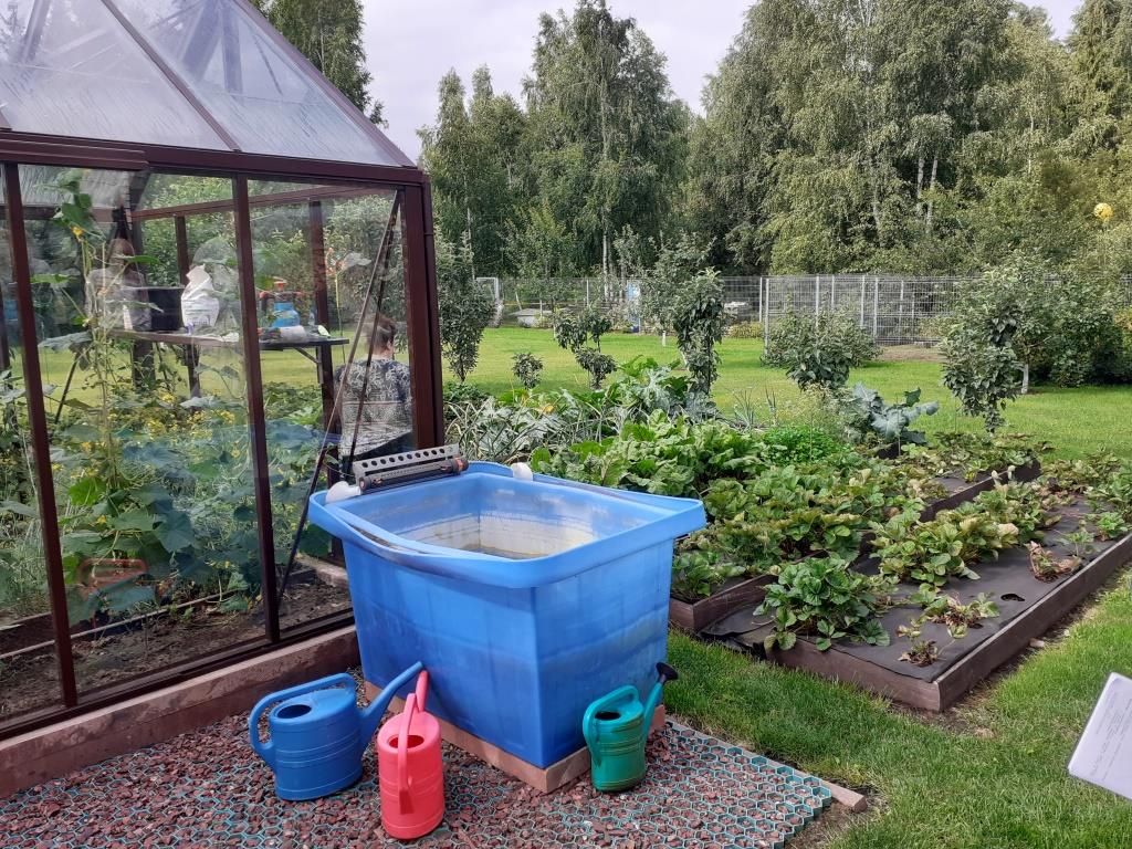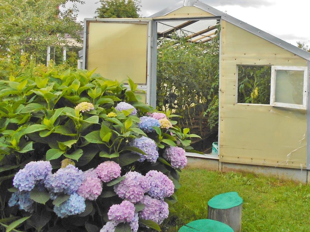 У Натальи Бычкова участок размером 18 соток. На нем построен дом, имеется красивая зона для отдыха, бассейн, цветники, теплицы с грядками. В теплице вызревают 6 сортов томатов, огурцы, перцы. Есть баклажаны, арбузы, дыни, виноград.