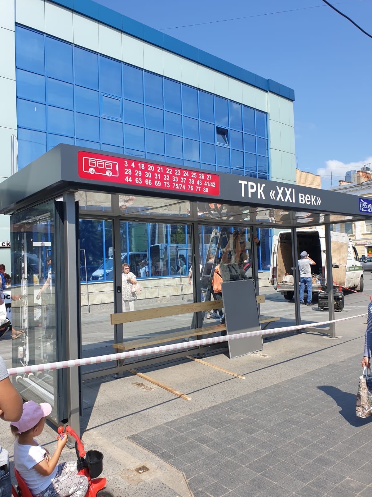 26 июля на улице Кирова в районе «ТРЦ 21 век» установлен современный остановочный павильон.