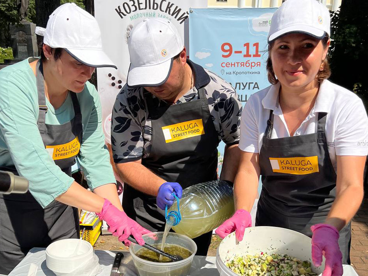 Команда гастрономического фестиваля «Калуга. Улица. Еда» от Агентства развития бизнеса приняла участие в мероприятии. Ребята приготовили «Окрошку Калужскую на щавелевом отваре» из ингредиентов, которые производятся в нашей области.
