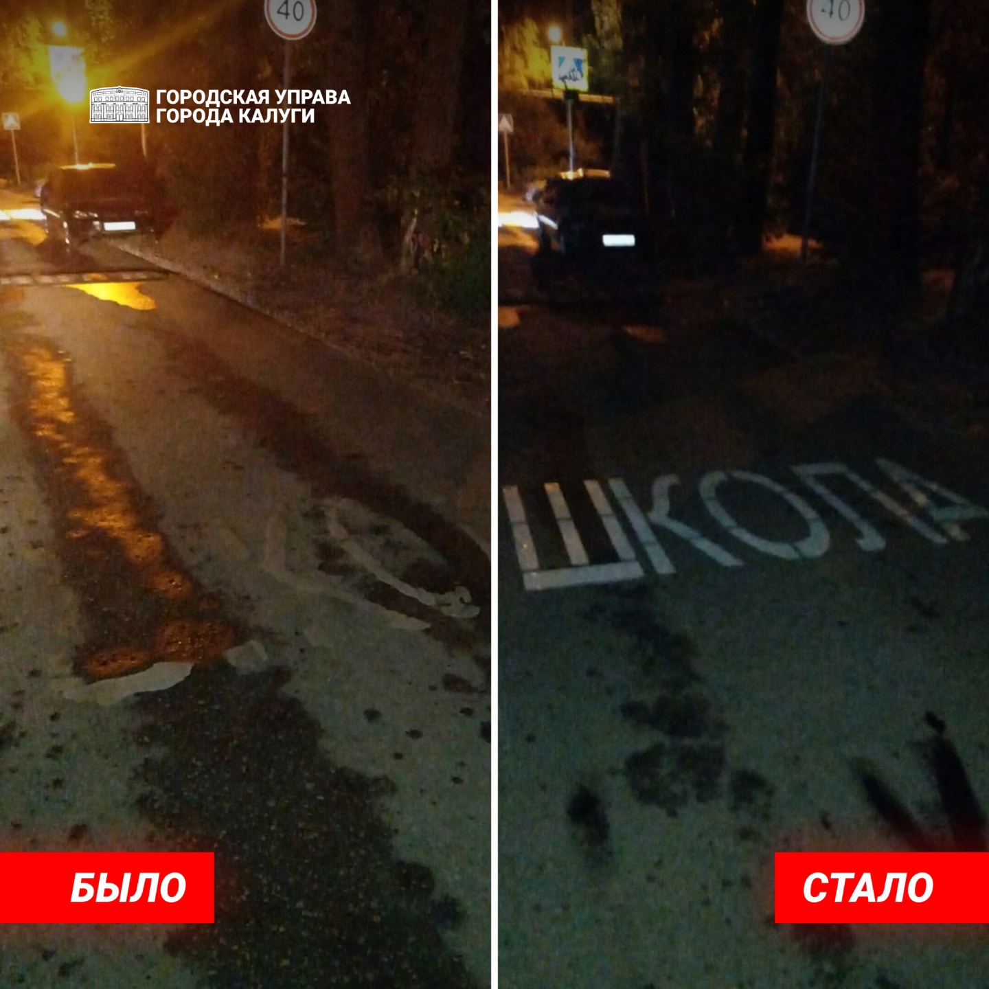 Сегодня ночью, чтобы не создавать пробок в дневное время, городские службы обновляли разметку около учреждений.