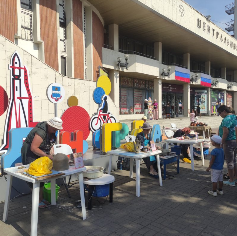 На площадке у кинотеатра "Центральный" проходит IV Всероссийский фестиваль народных ремёсел "Хлудневское древо".