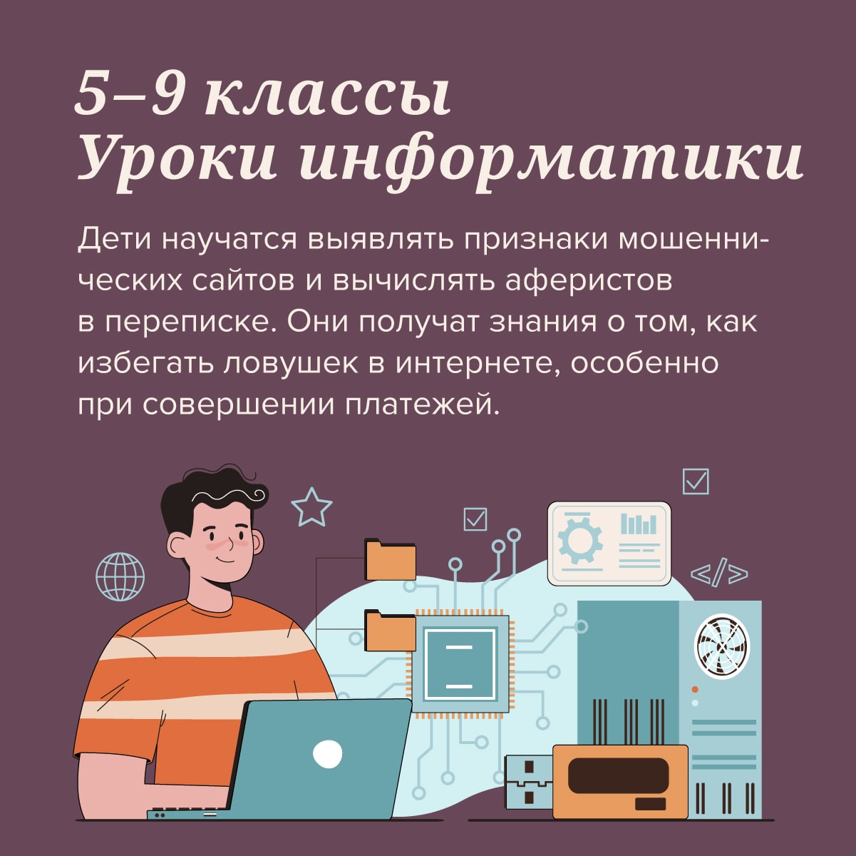 Многие продвинутые молодые люди начинают зарабатывать, проводят онлайн покупки через Интернет. Зачастую через школьников мошенники пытаются добраться не только до денег, но и до документов взрослых. Чтобы втереться в доверие ребенка, в ход идут разные мошеннические схемы. Без подготовки ребенок не распознает обман, ведь он пока не понимает рисков и доверяет всем подряд. На уроках по финансовой грамотности школьникам расскажут, с какими способами мошенничества они могут столкнуться, в том числе в Интернете, и как действовать в таких ситуациях.