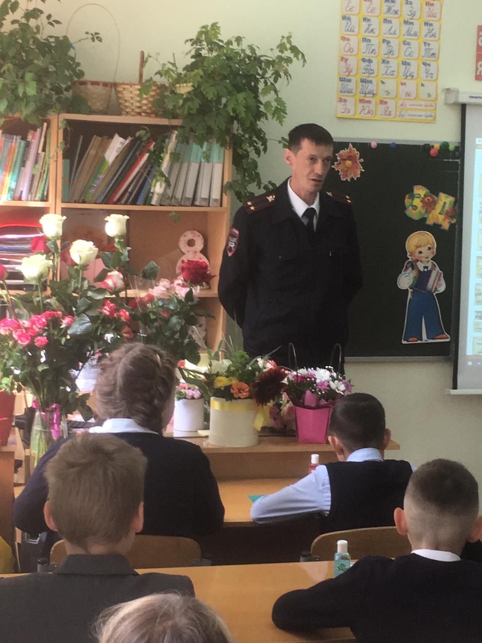 Чтобы юные участники дорожного движения после летних каникул чувствовали себя уверенно на дорогах, сотрудники Госавтоинспекции напомнили основные правила поведения на улице и вблизи проезжей части. Рассказали, что нужно быть очень внимательными на дороге, как правильно переходить проезжую часть, а так же об опасности, которая может ожидать их во время игр у проезжей части. Полицейские напомнили школьникам о требованиях к движению велосипедов, о том, что переходить дорогу можно только по пешеходному переходу, спешившись и ведя велосипед рядом с собой, а также разъяснили необходимость и эффективность использования средств пассивной защиты – велошлем, налокотники, наколенники и перчатки.