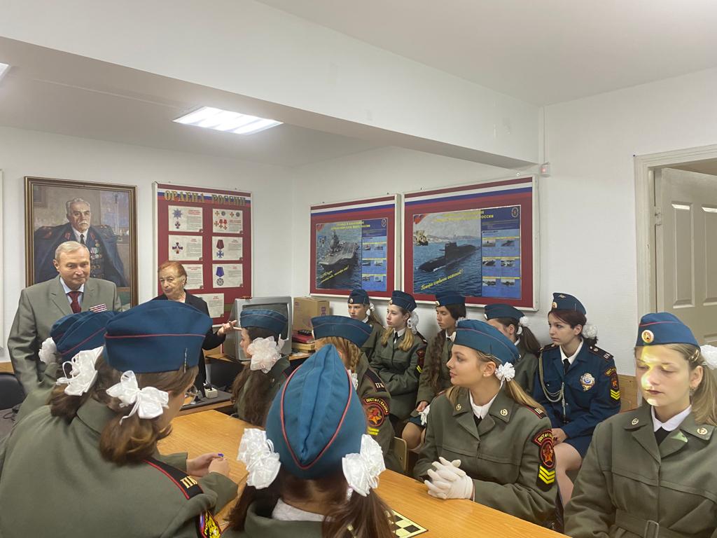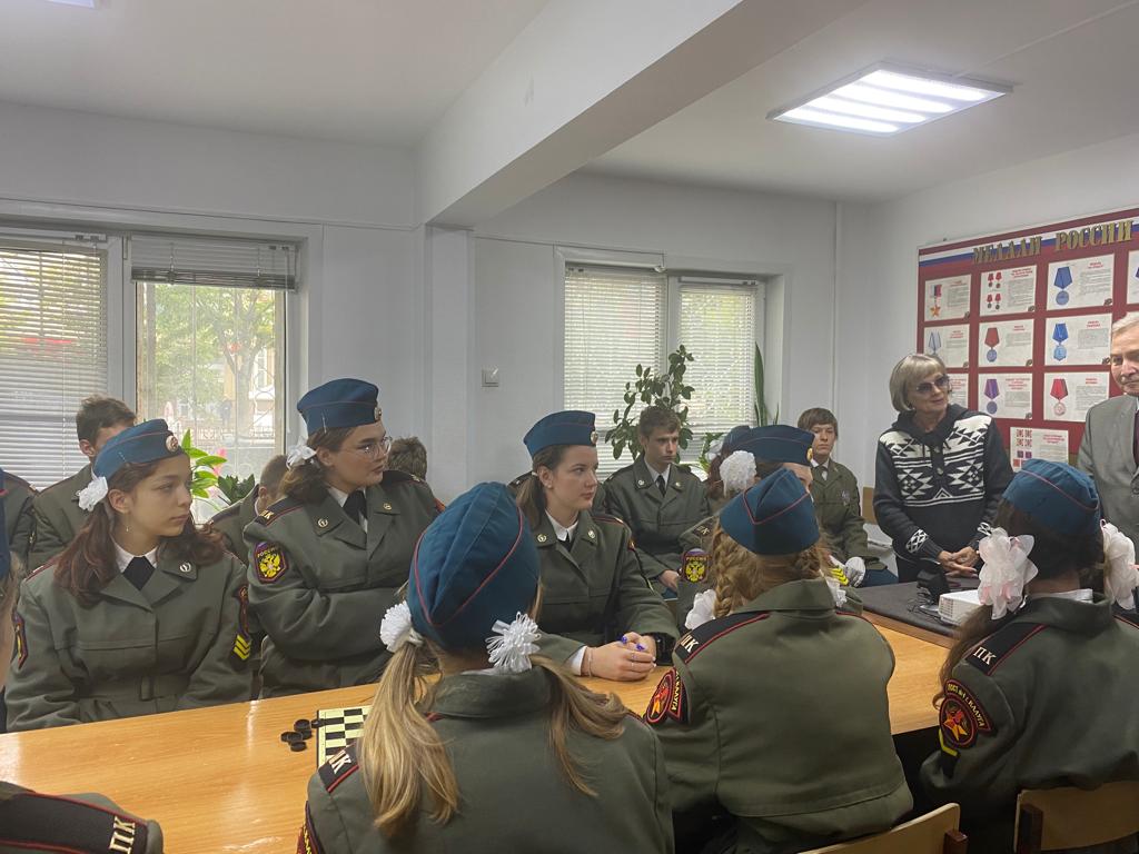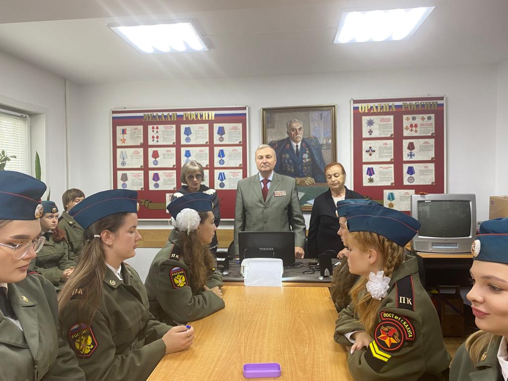 6 сентября на Посту №1 города Калуги председатель городского Совета ветеранов (пенсионеров) войны и труда Евгений Янкелевич провел встречу со старшеклассниками МБОУ «СОШ №22» г. Калуги, посвященную началу нового учебного года.