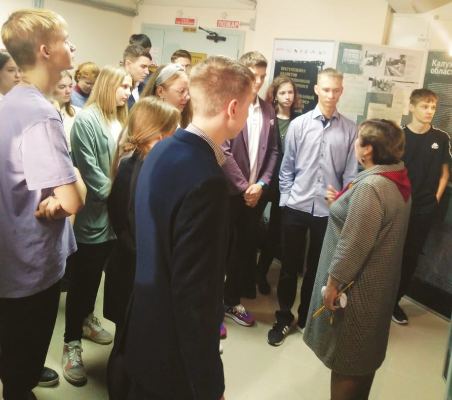 Передвижная мини-выставка, созданная в 2020 году, уже побывала в учебных заведениях и в государственных учреждениях Калуги и области. Сейчас ознакомиться с экспозицией можно в областном Государственном архиве. Специалисты проводят экскурсии и лекции для всех желающих. В первую очередь они интересны для школьников: на этой неделе выставку уже посетили несколько групп учащихся. Сегодня на экскурсию пришли старшеклассники калужской средней школы №13. Их особенно заинтересовали подлинные документы, представленные на выставке.