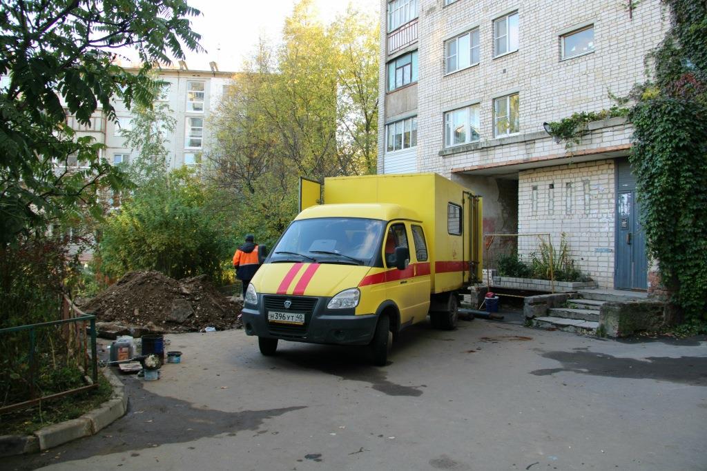 В начале отопительного периода при запуске системы теплоснабжения дома «Калугатеплосеть» зафиксировала большую утечку теплоносителя и прорыв трубы.