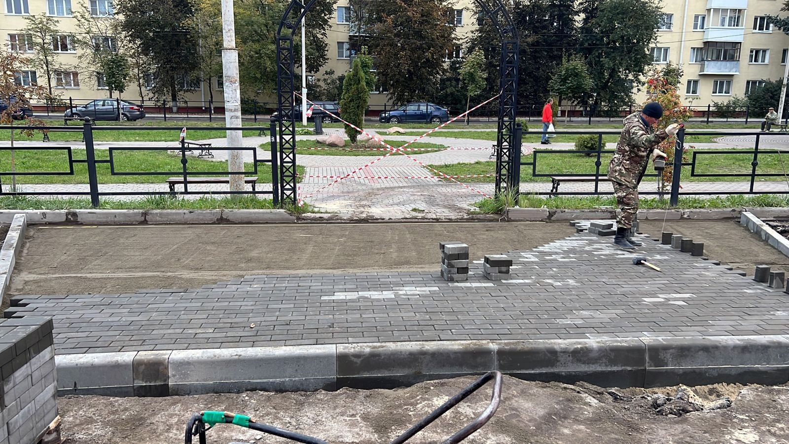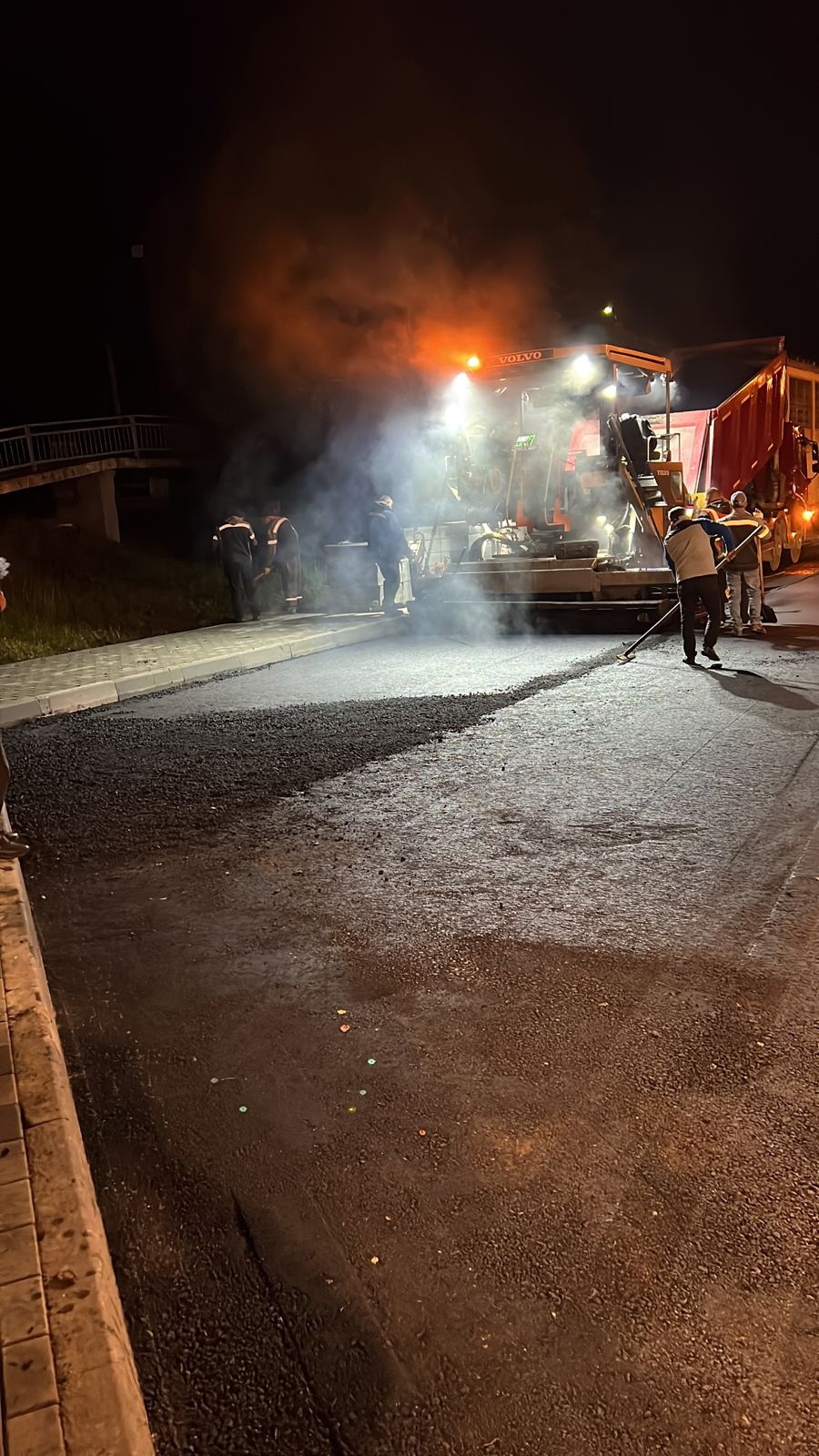 В настоящее время работы выполнены на 60% и идет подготовка к укладке верхнего слоя.