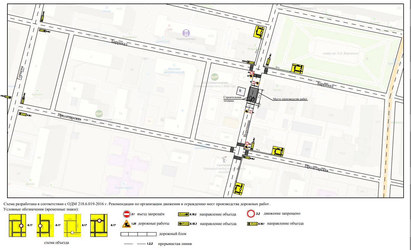 В связи с работами по строительству водопровода и канализации будет введено временное ограничение движения транспортных средств по ул. Воронина в районе дома № 8.