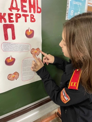Так, например, в МБОУ «СОШ №7» ЮИДовцы изготовили своими руками красочный плакат с краткой информацией о памятной дате и разместили его в вестибюле школы. В знак памяти ребята прикрепили к плакату аппликацию из свечи, зажженной в ладонях.