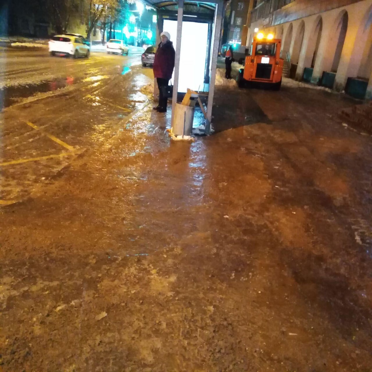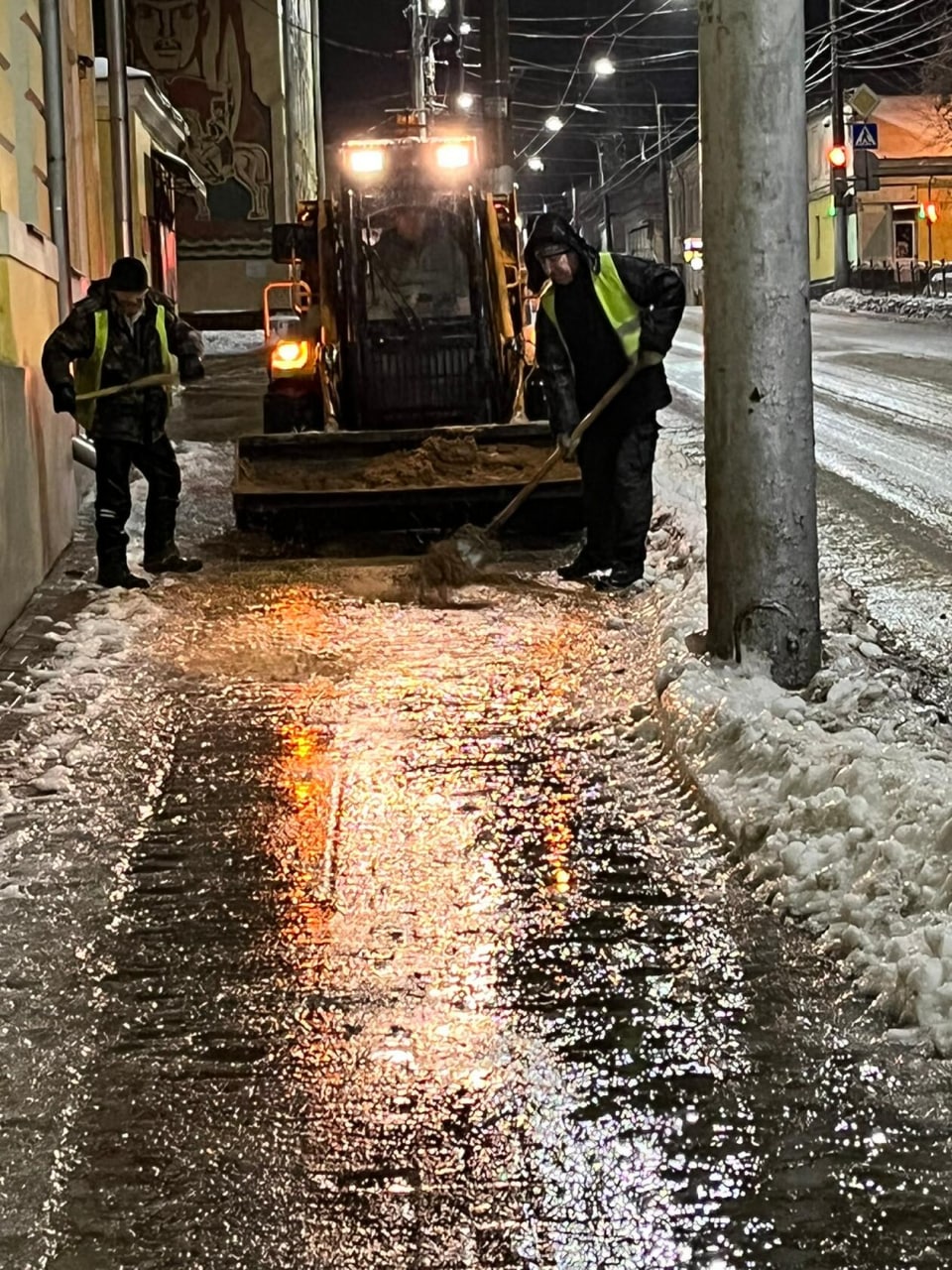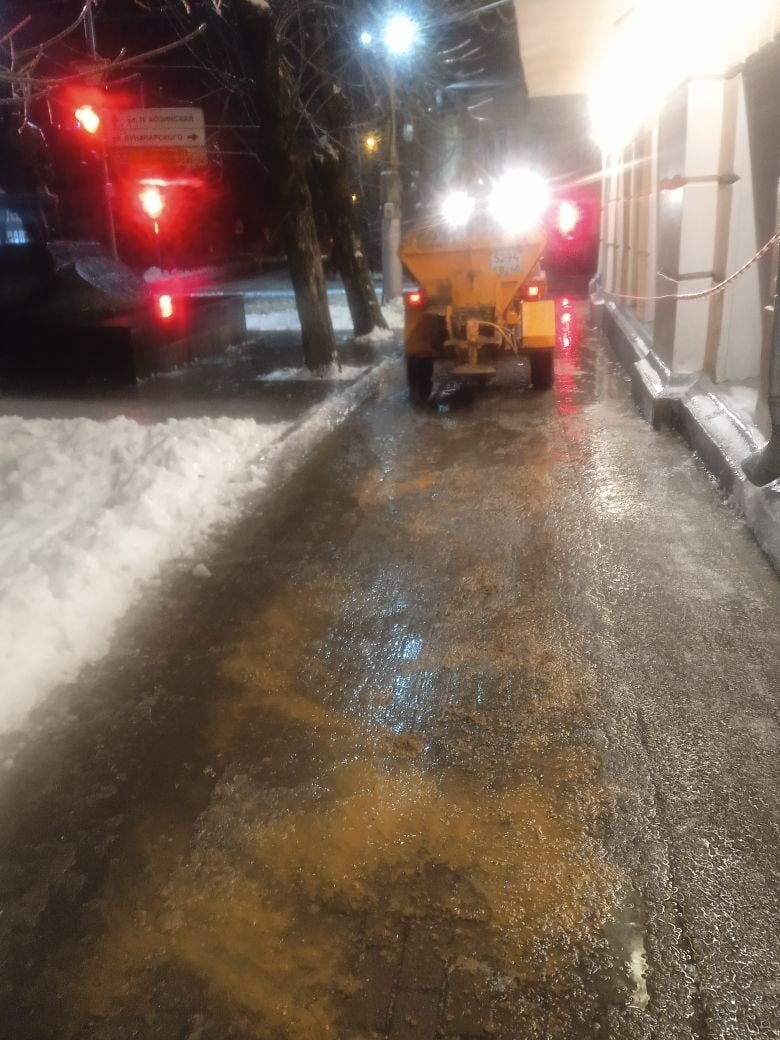 Дорожники ещё со вчерашнего дня были наготове. Всю ночь бригады работали – на автодорогах и пешеходных зонах. Работают усиленно и сейчас.