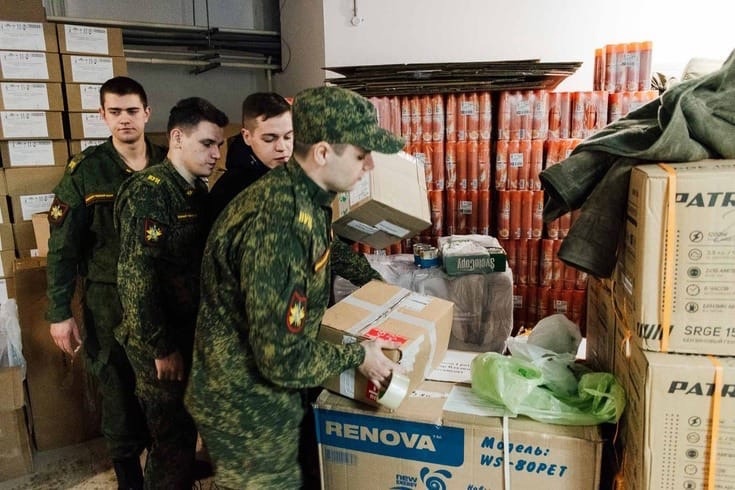 Студенты кафедры № 7 Связи и ИТ военного учебного центра при МГТУ им. Н.Э. Баумана регулярно участвуют в комплектации посылок, разгрузке и погрузке оборудования, экипировки, продуктов питания и вещей.