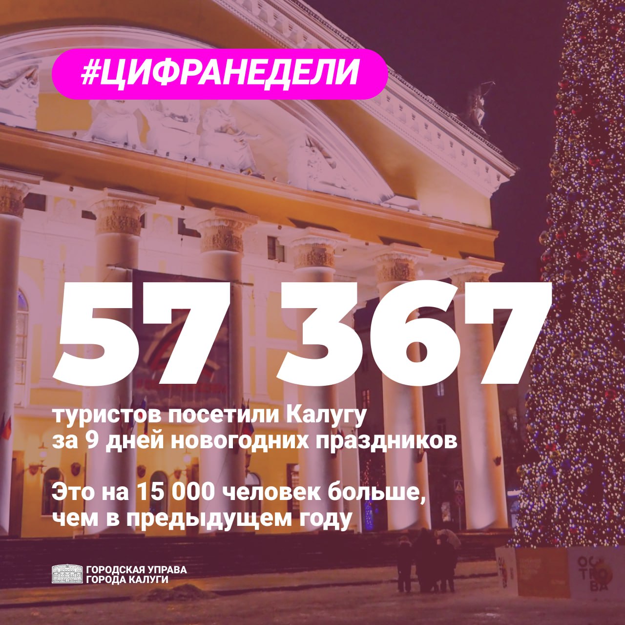 Количество туристов, посетивших Калугу в новогодние праздники, в сравнении с прошлым годом увеличилось на 15 тысяч.