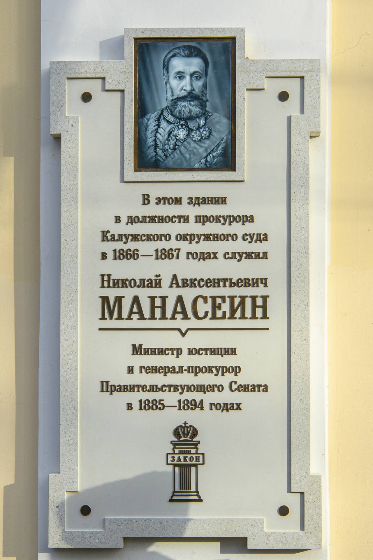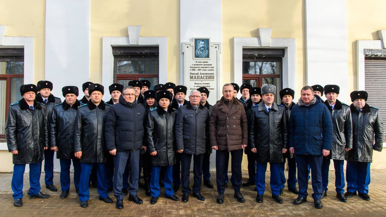 Вы продолжаете лучшие традиции своих предшественников. Твердо отстаиваете принципы законности и правопорядка в нашем регионе. Защищаете интересы граждан. Искренне признателен вам за напряженный, ответственный труд. Крепкого здоровья и дальнейших успехов на благо нашей любимой Родины, — обратился к ним Губернатор.В День работников прокуратуры на здании Присутственных мест в Калуге была открыта мемориальная доска генерал-прокурору, министру юстиции Российской империи Николаю Манасеину. В этом здании в 1866-67 годах он работал прокурором Калужского окружного суда.