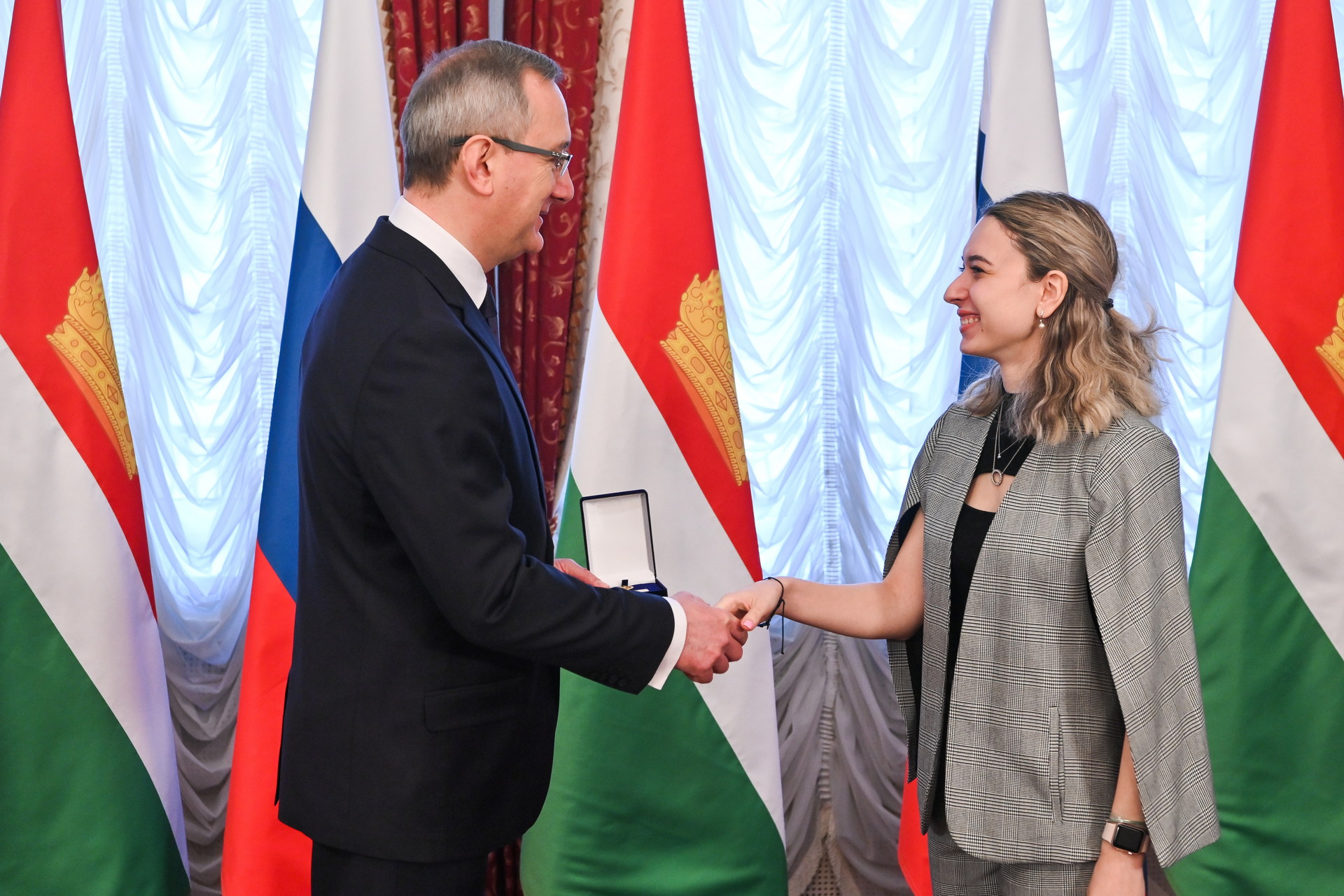 В преддверии Дня науки «Почетный знак имени Екатерины Романовны Дашковой» II и III степеней из рук губернатора получили аспирантки и студентки вузов Калуги и Обнинска – Диана Белодед, Анжелика Мельникова, Александра Берсенева, Елизавета Марченкова и Софья Никуличева. Эта региональная награда учреждена за успехи в учебе и в фундаментальных и прикладных научных исследованиях.