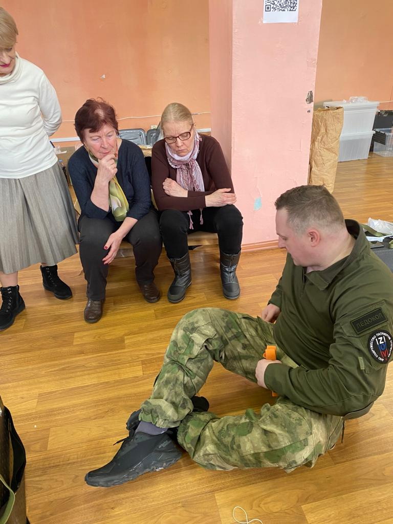 28 марта активисты городского Совета ветеранов (пенсионеров) войны и труда прошли ознакомительный экспресс-курс «Технологии выживания» по тактической медицине в калужском центре общественной организации «Содружество патриотов Отечества ZOV». Занятия провел инструктор Вадим Лавриченко.