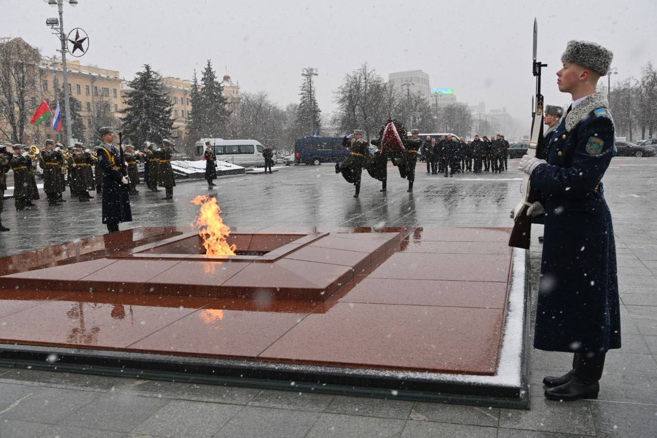 В ходе мероприятия оркестр почетного караула Минской военной комендатуры исполнил Государственные гимны Российской Федерации и Республики Беларусь.