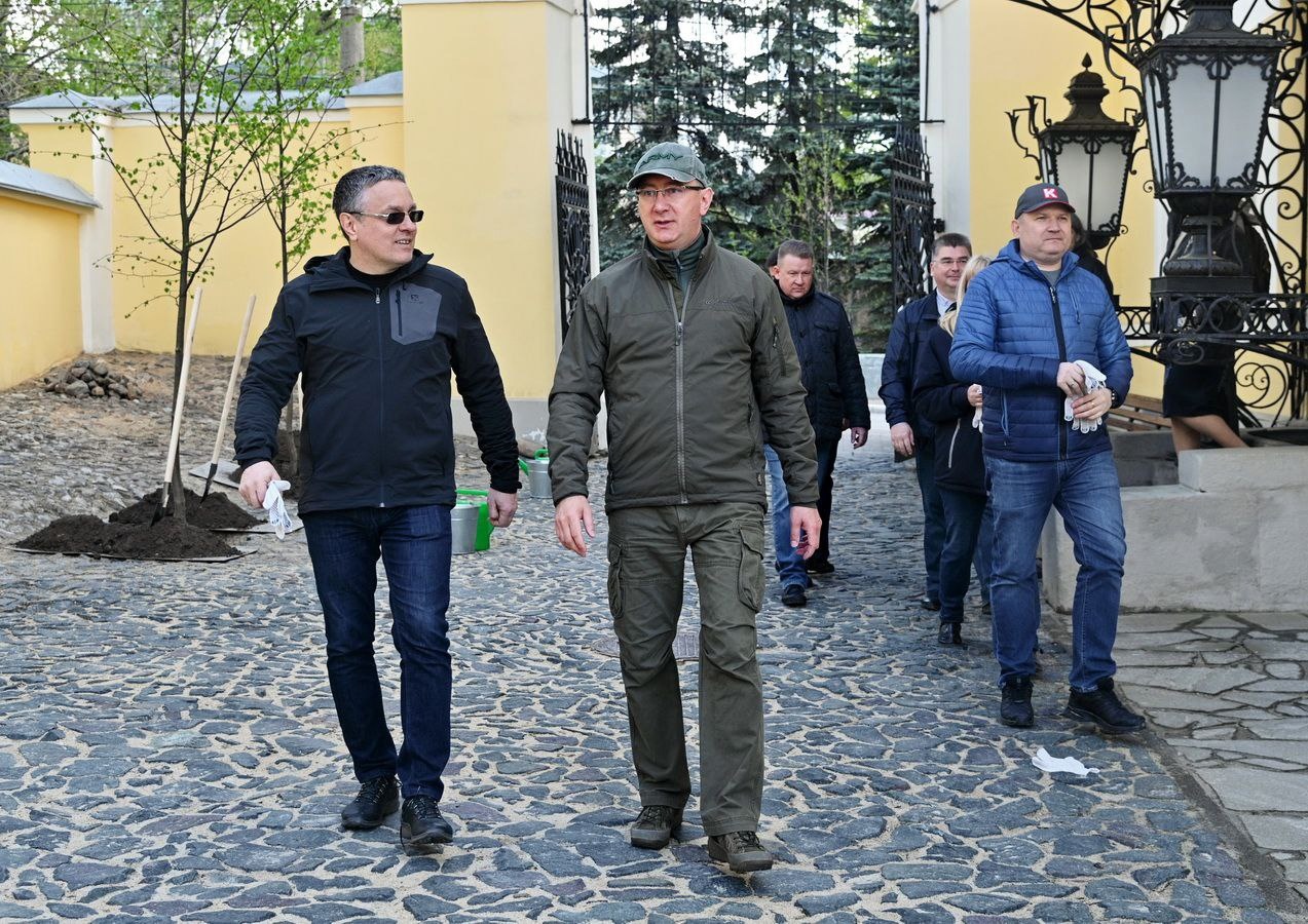 Владислав Шапша вместе с Дмитрием Денисовым приняли активное участие в уборке территории будущего сквера, в ходе которой обсудили ряд актуальных вопросов благоустройства областного центра.