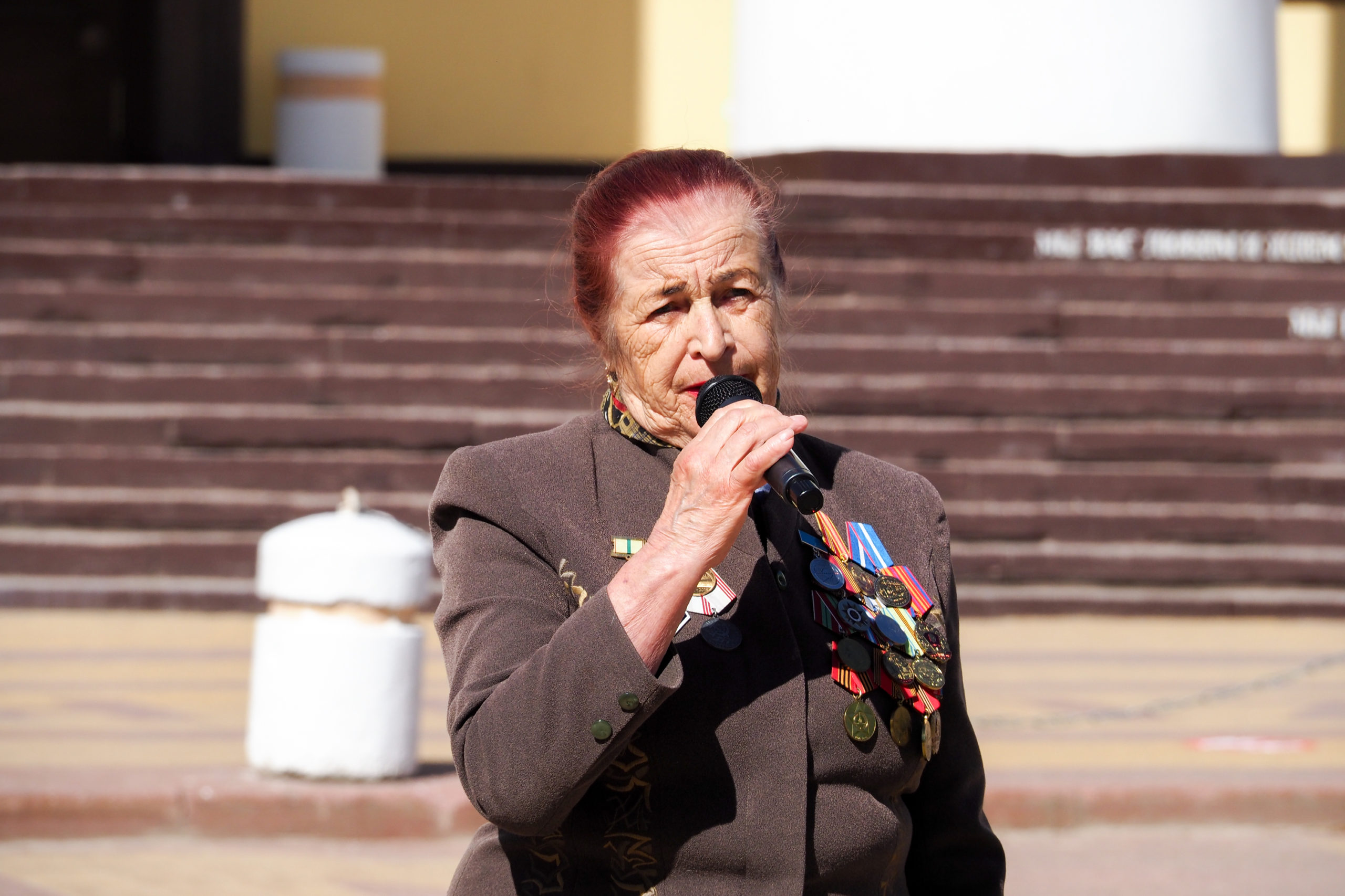 Участников флешмоба поприветствовала ветеран Великой Отечественной Войны, жительница блокадного Ленинграда Тамара Пинчук: