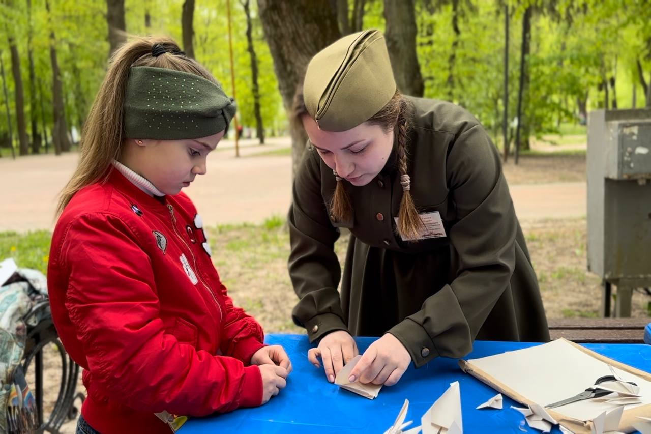 На площадках для мастер-классов участники праздника смогли сделать своими руками открытки для ветеранов, написать «Письма Победы» и сделать бумажных журавликов.