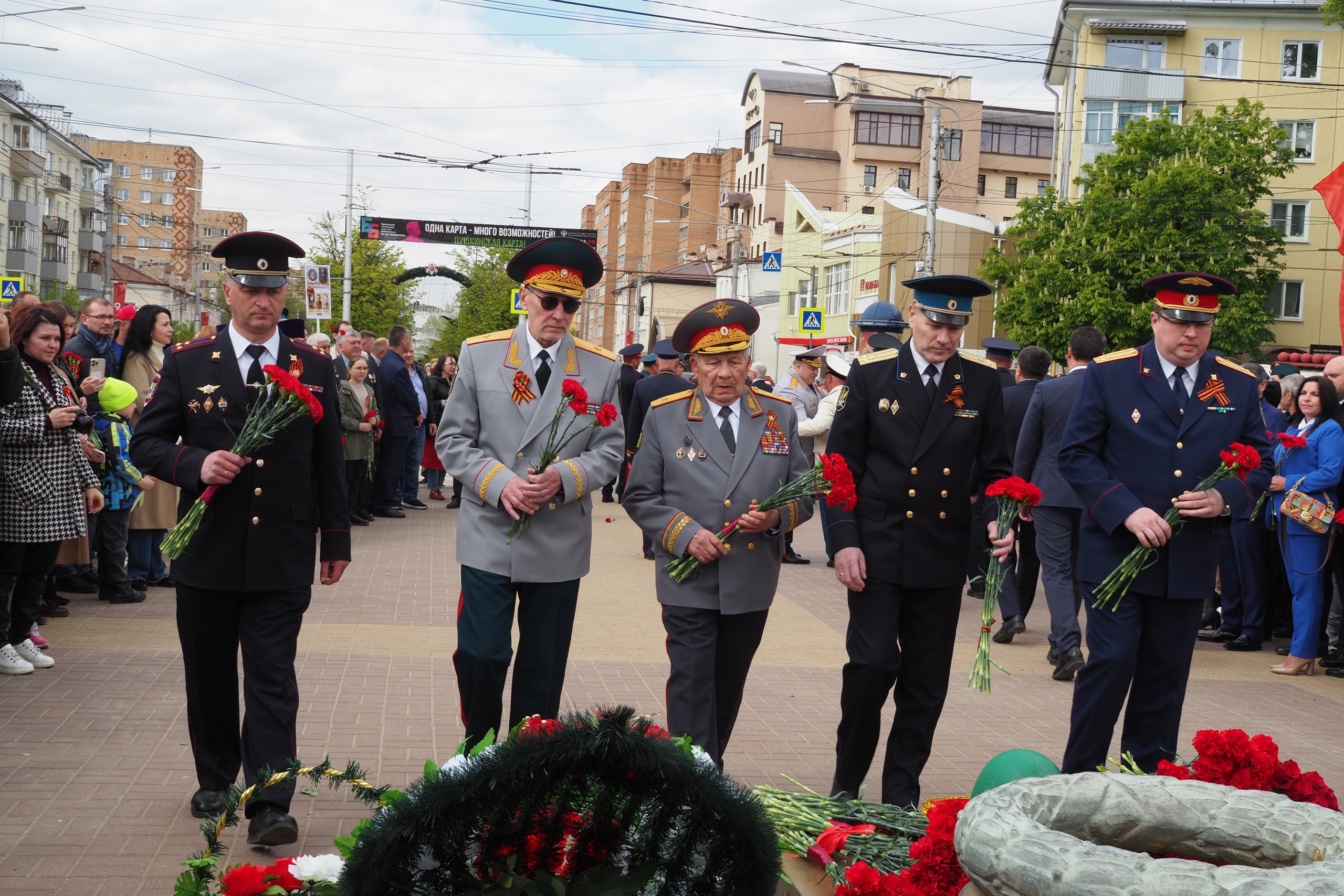 В этом году было принято решение отменить шествие «Бессмертного полка». Однако сотни человек пронесли по улицам города дорогие страницы личной памяти — фотографии своих отцов и дедов, завоевавших победу. Многие из них навсегда остались на полях сражений. Все они встретили на площади Победы, где состоялось торжественное возложение венков и цветов, в память о тех, кто не вернулся и не дожил до сегодняшних дней.