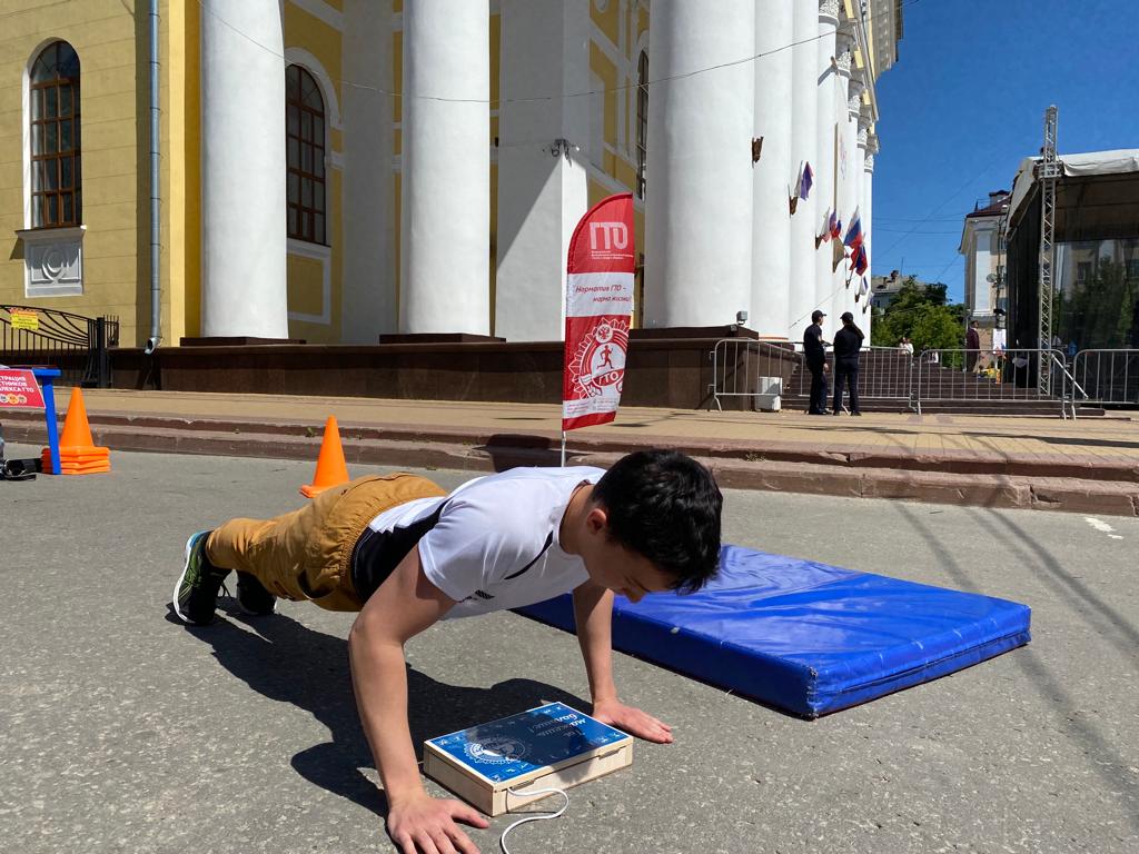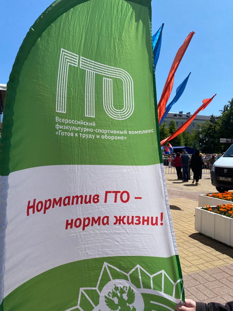 В честь празднования Дня России на театральной площади прошла праздничная программа, включающая в себя различные красочные номера калужских коллективов. Городской центр тестирования ГТО тоже не остался в стороне, и для всех желающих была открыта площадка по выполнению нормативов комплекса ГТО.