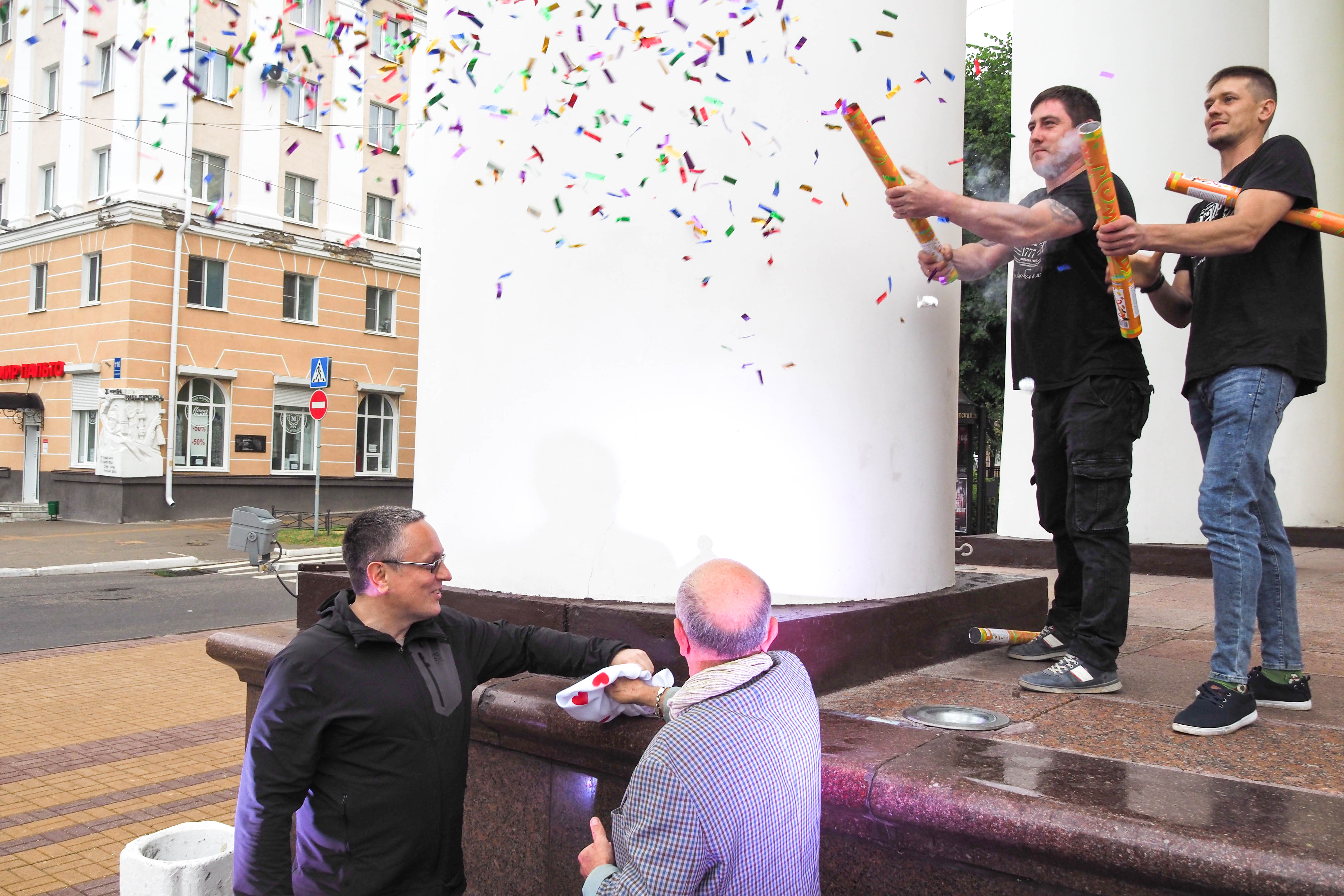 28 июня у здания областного драматического театра состоялось торжественное открытие первой мини-скульптуры космонавтика.