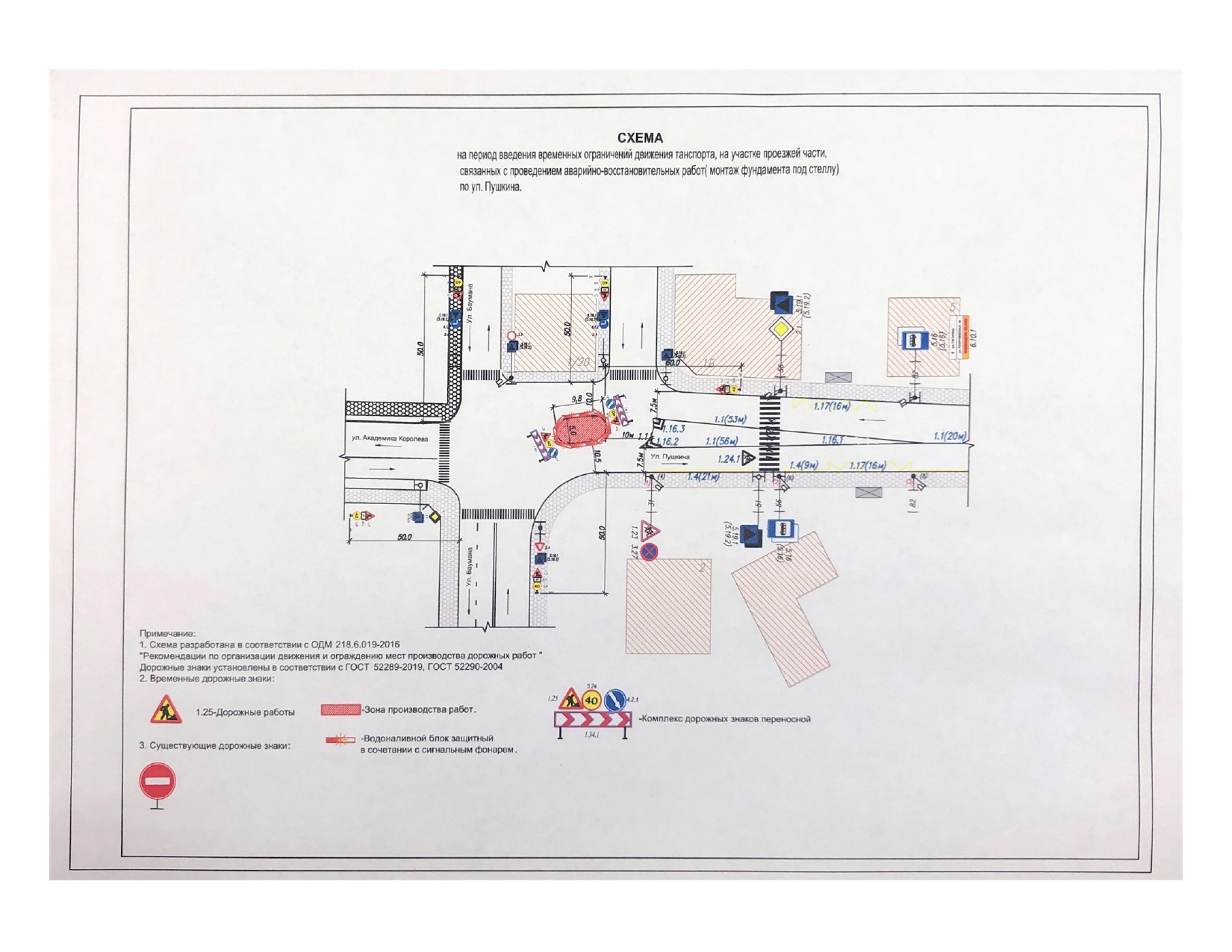 В связи с проведением работ по монтажу фундамента стеллы "Город воинской доблести" будет частично ограничено движение транспорта на перекрестке улиц Пушкина и Баумана.