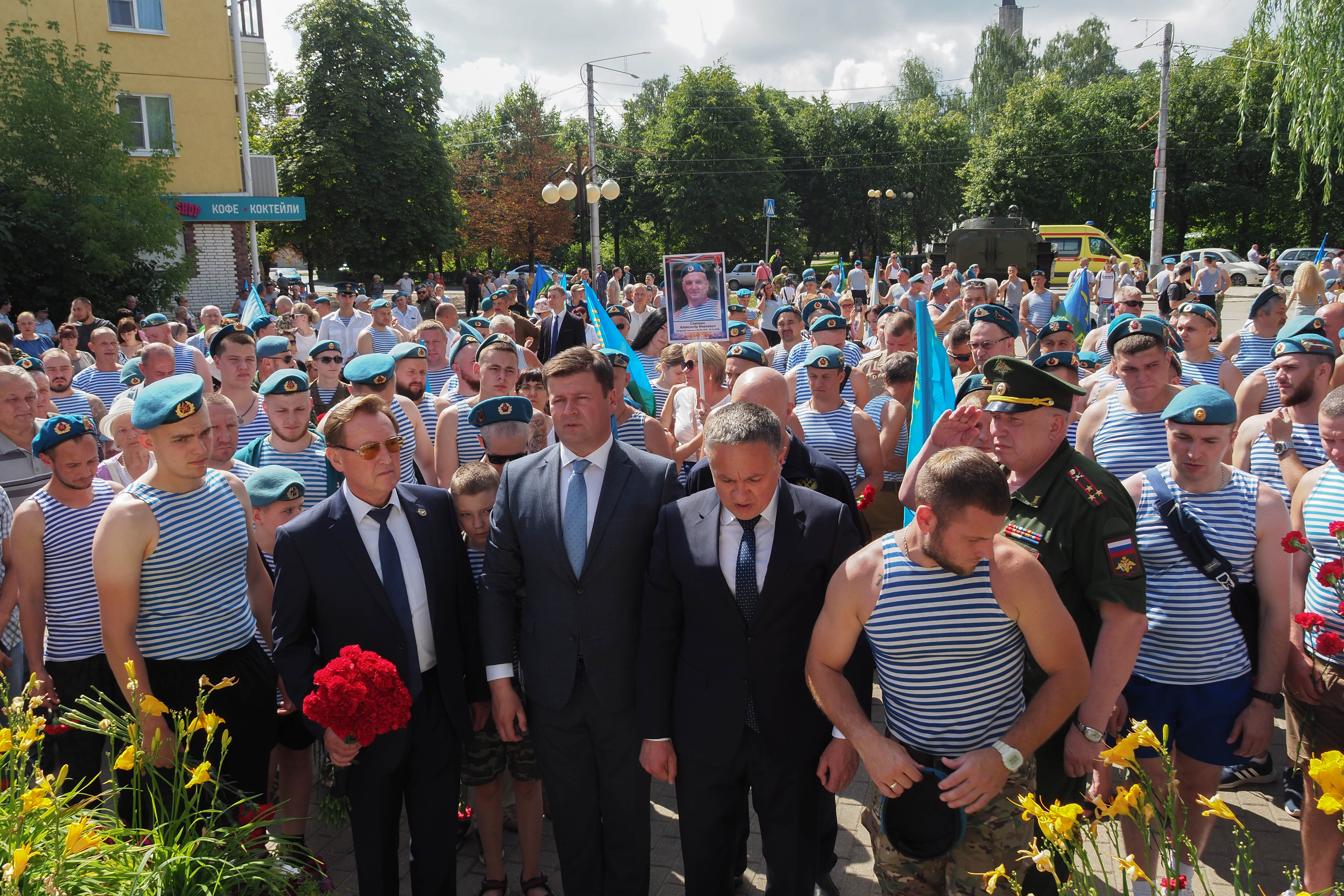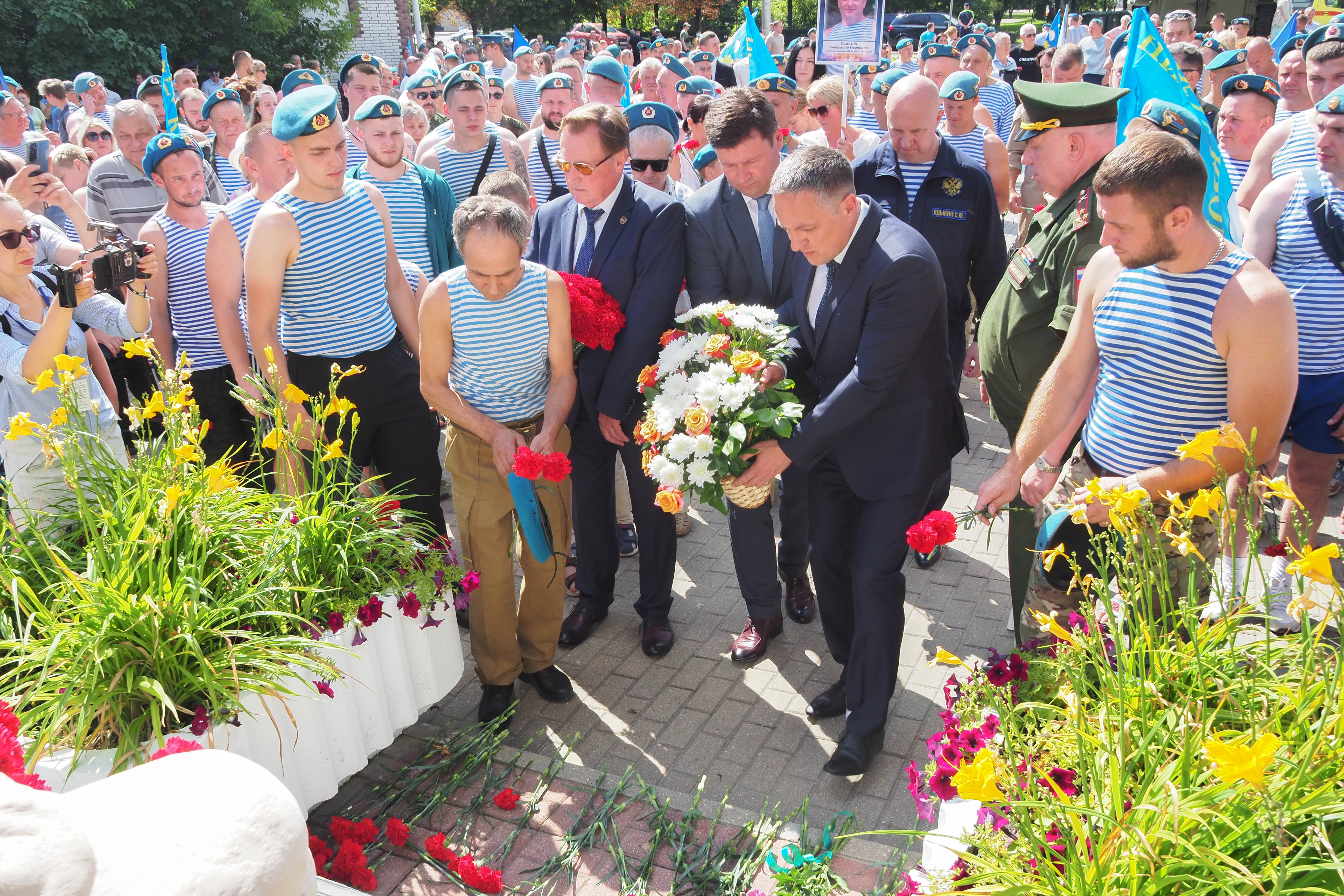 Около 100 десантников возложили цветы и минутой молчания почтили память павших воинов. К собравшимся обратился Городской Голова Дмитрий Денисов.