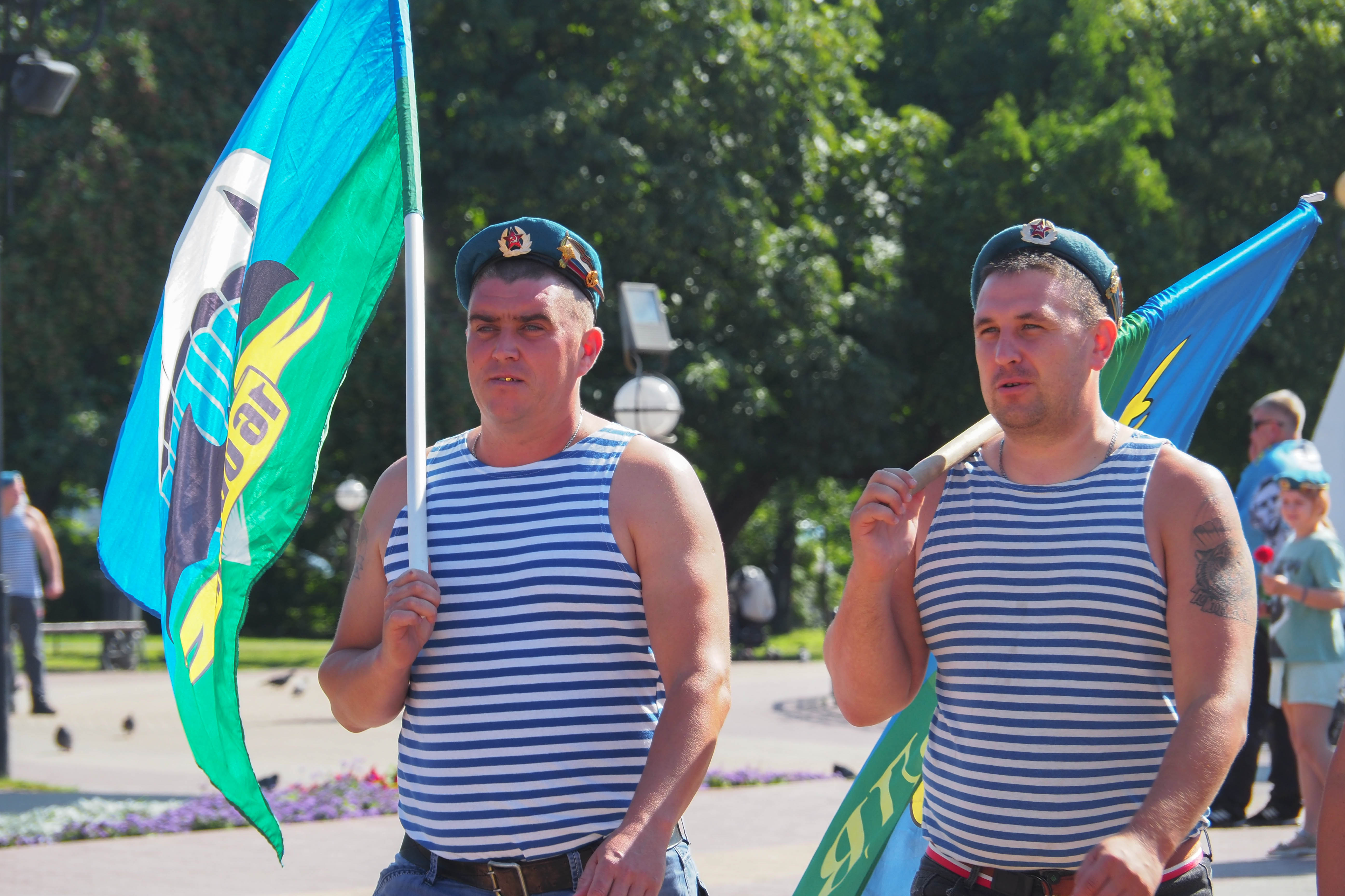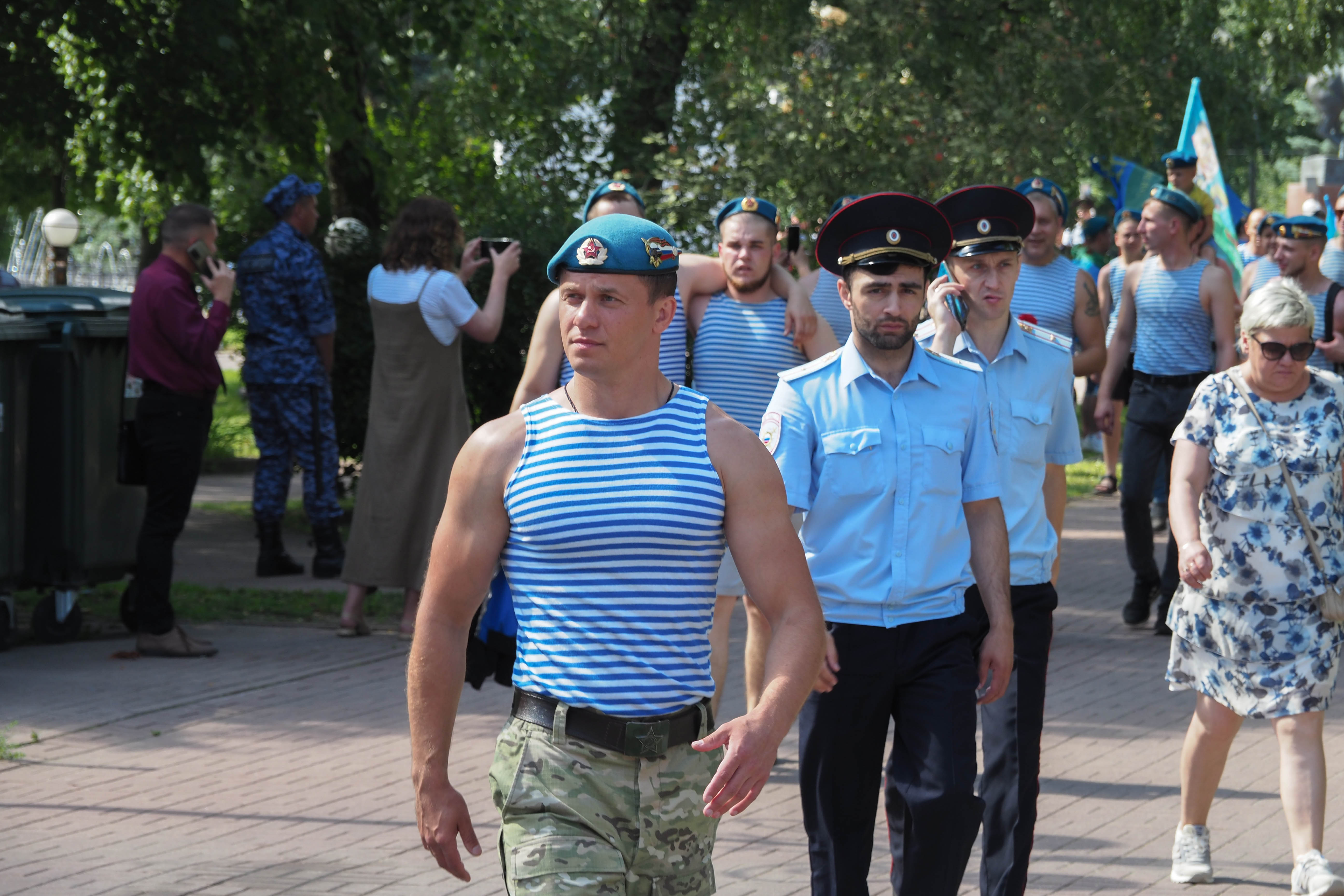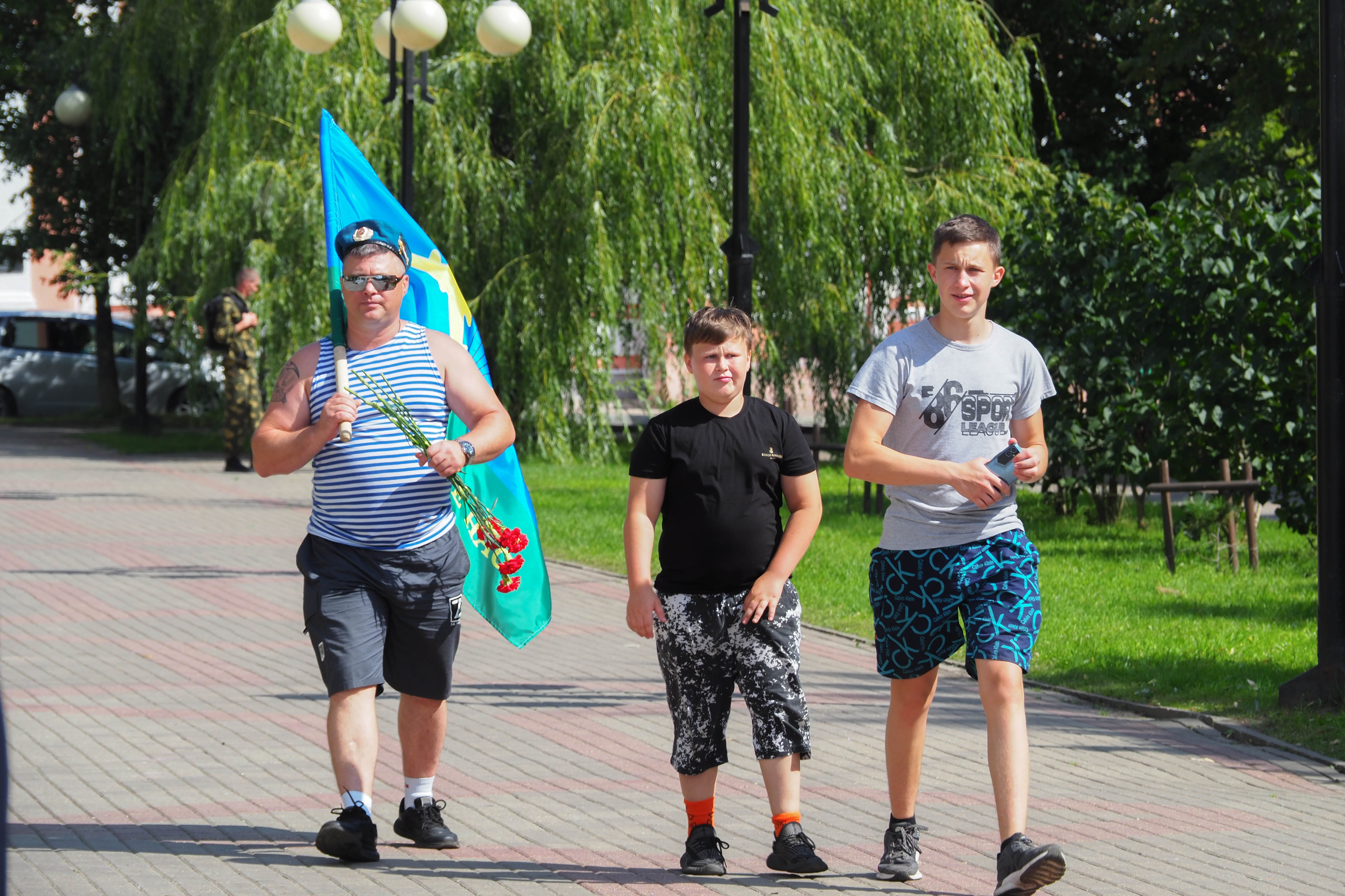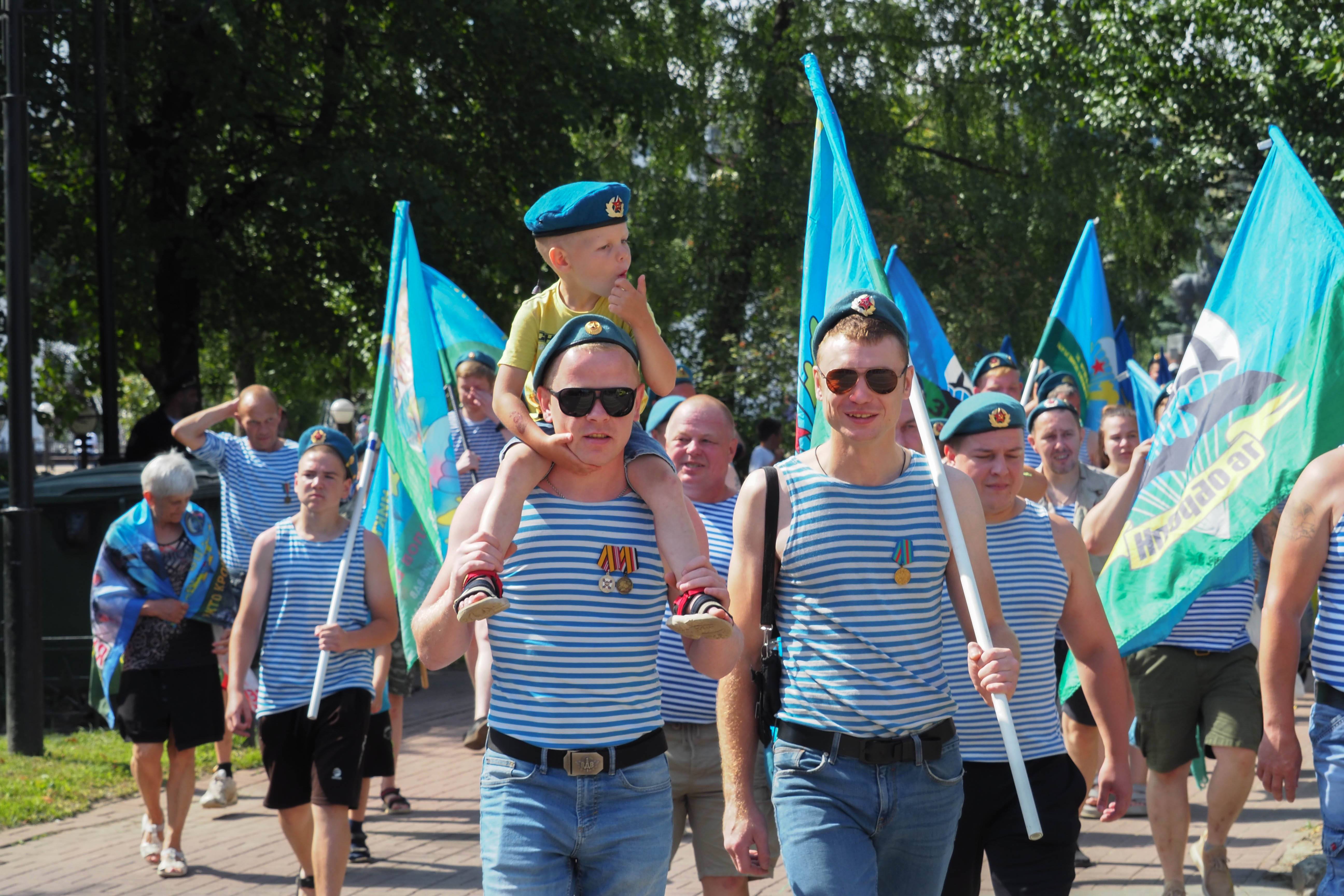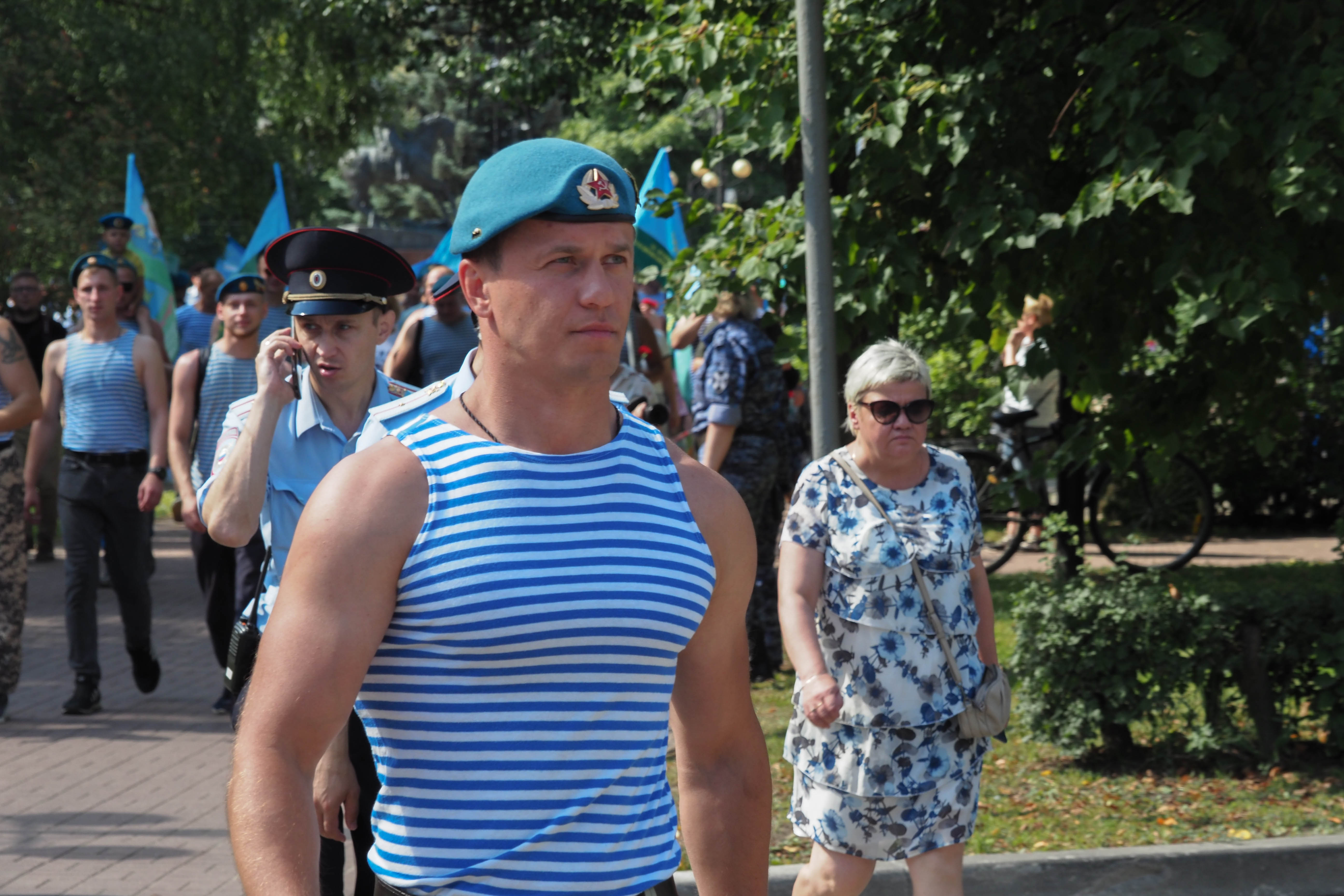 В Калуге традиционное праздничное шествие по улице Кирова отменили. Но большинство десантников все-таки собрались на сквере Мира и дошли до сквера Защитников Отечества, пусть и по тротуарам. Там прошел традиционный митинг.
