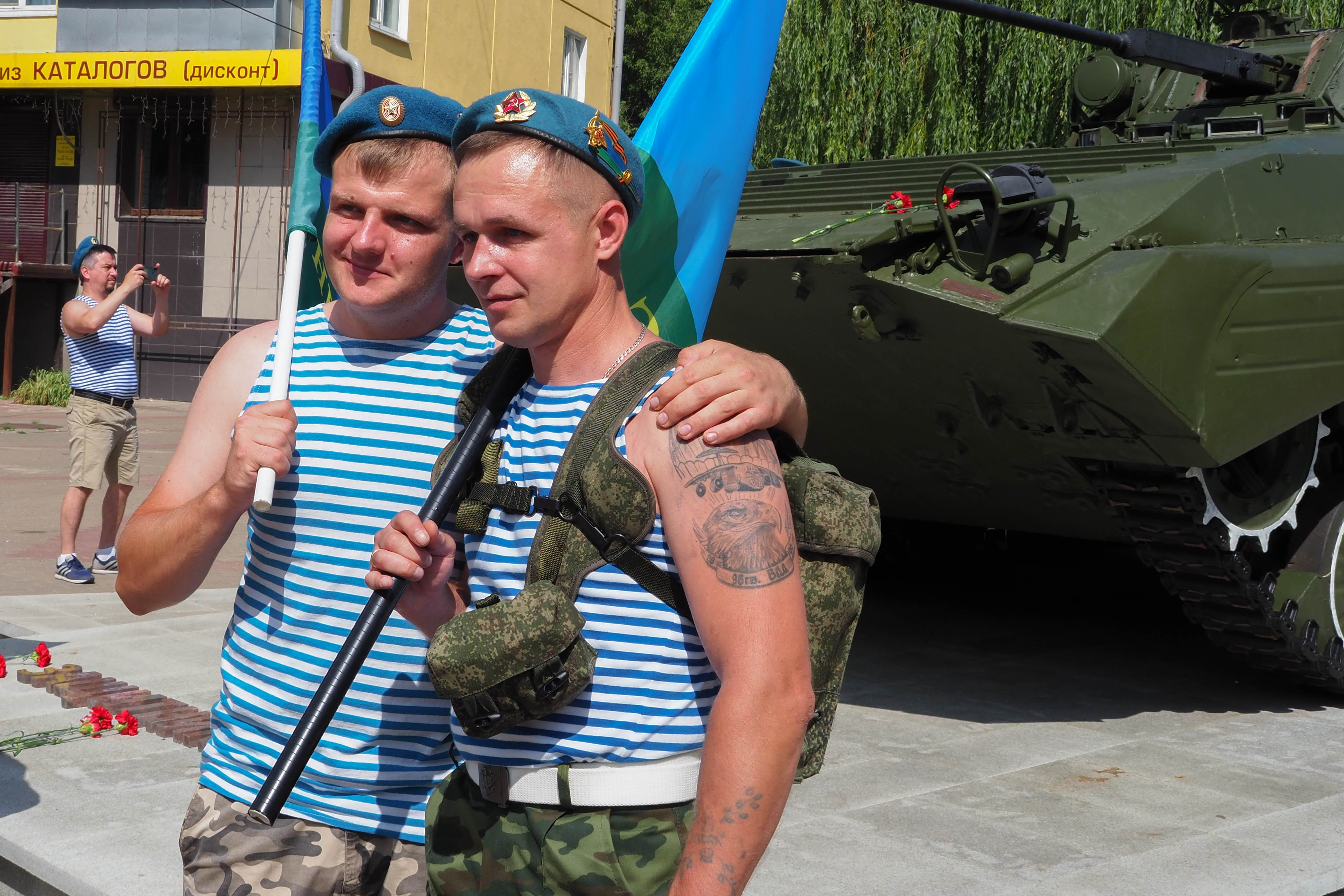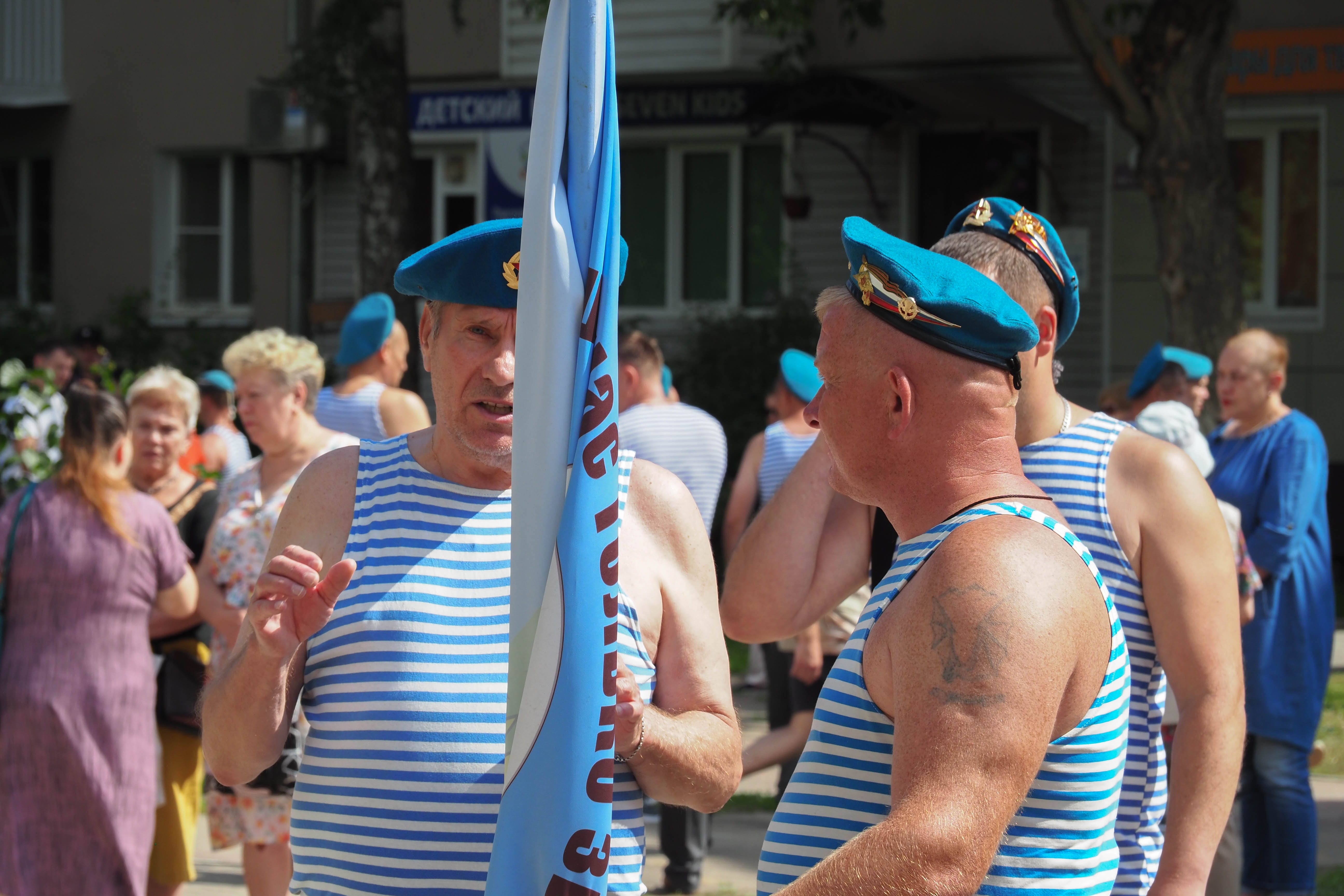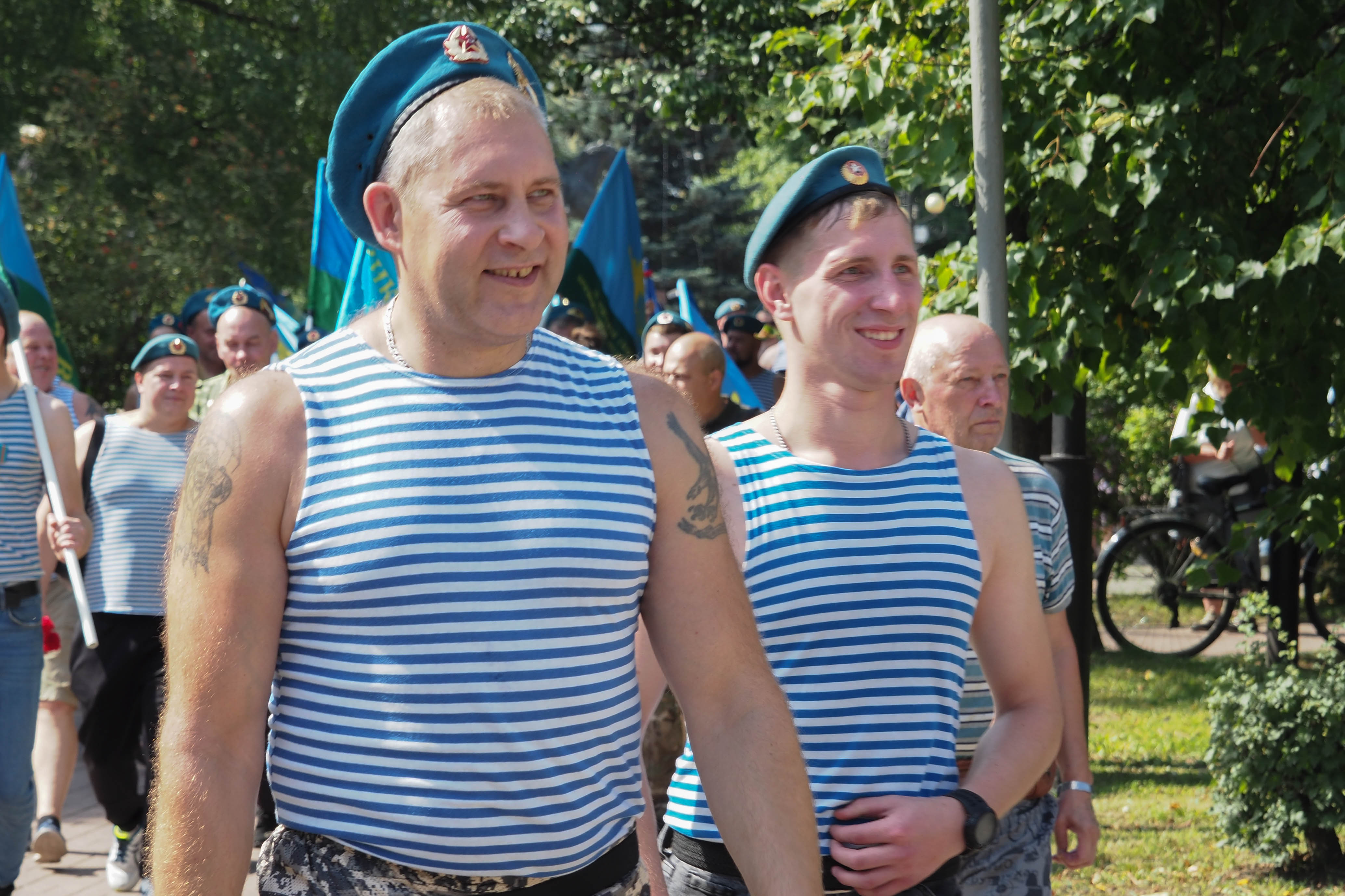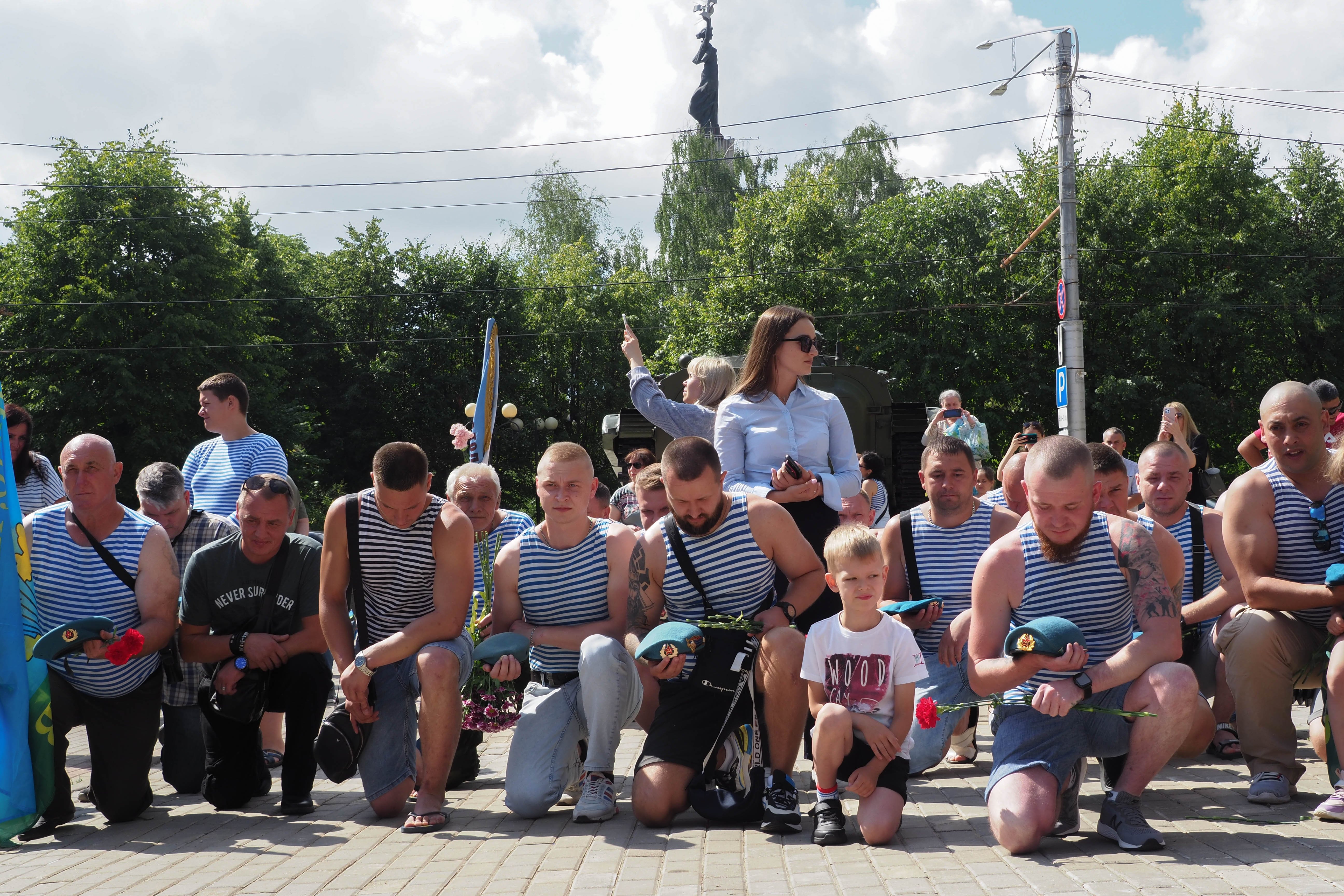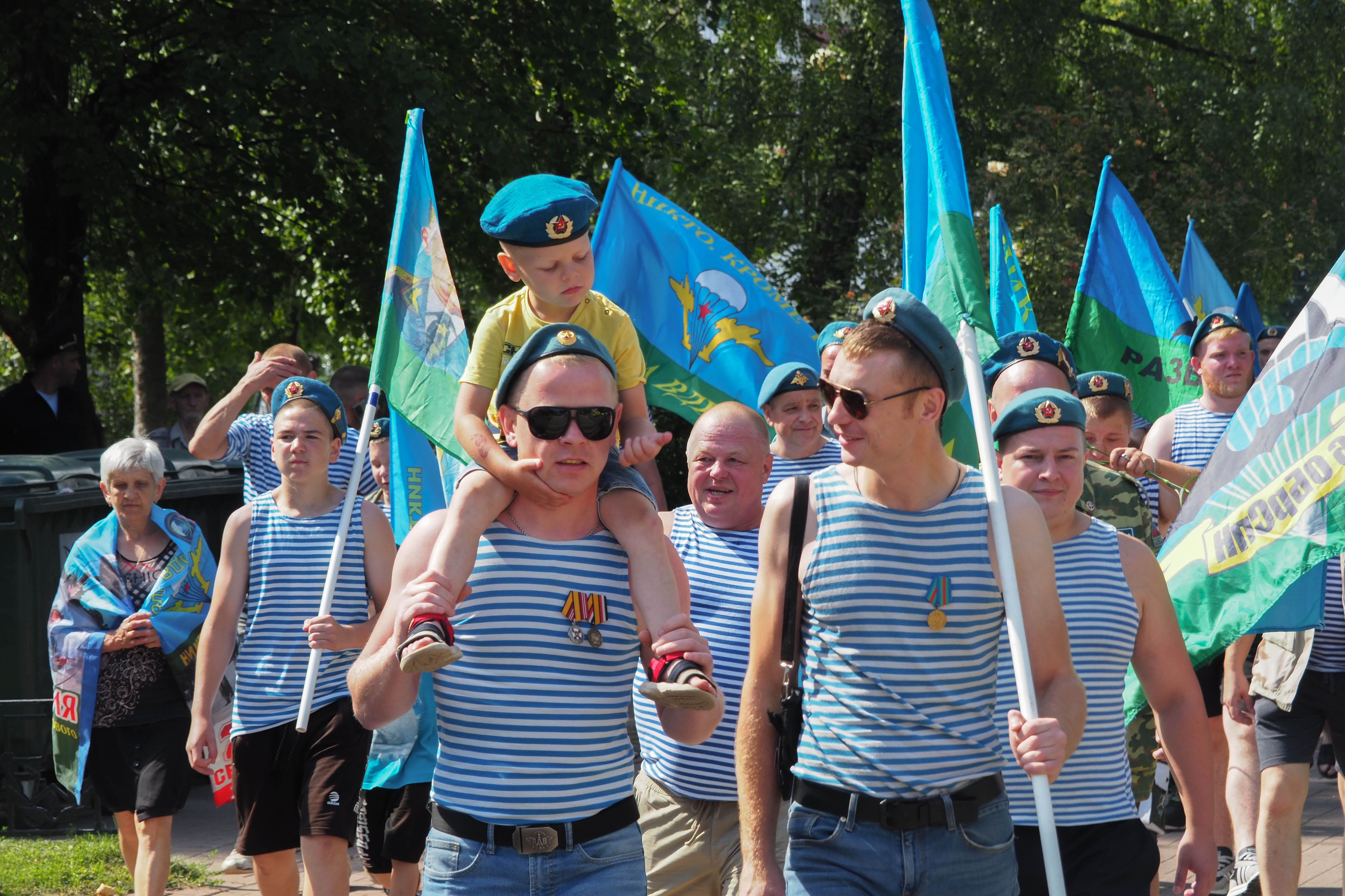 В Калуге традиционное праздничное шествие по улице Кирова отменили. Но большинство десантников все-таки собрались на сквере Мира и дошли до сквера Защитников Отечества, пусть и по тротуарам. Там прошел традиционный митинг.