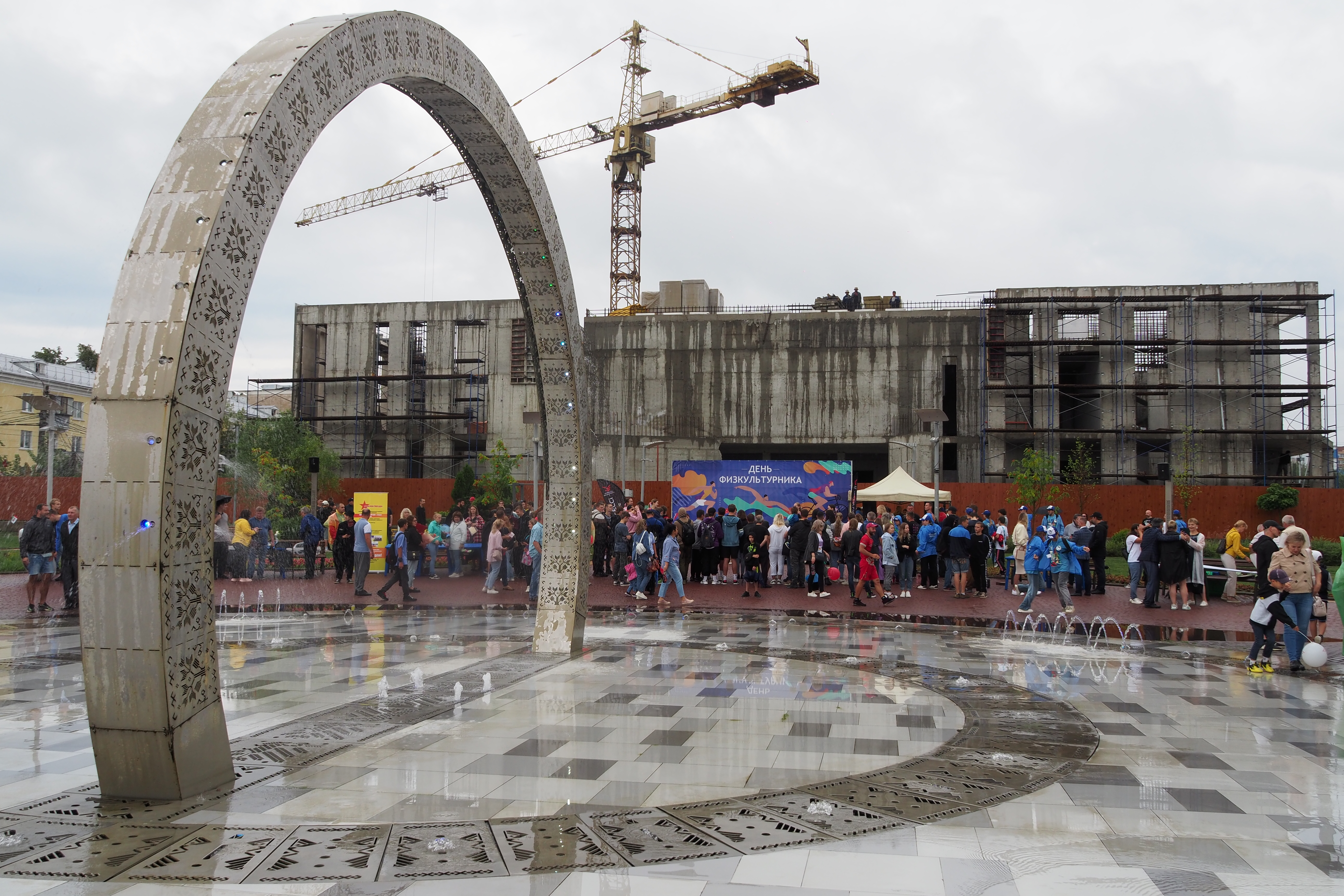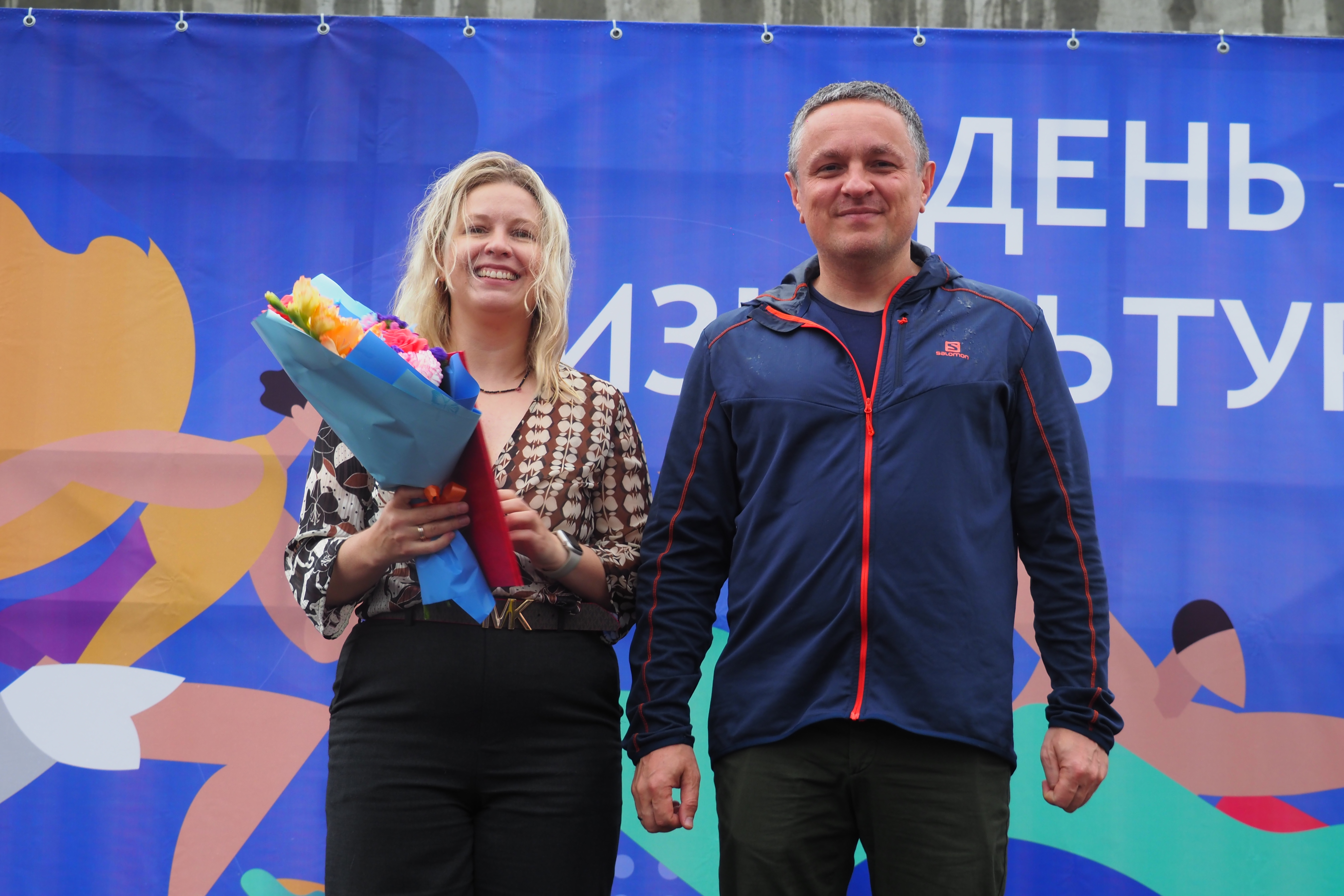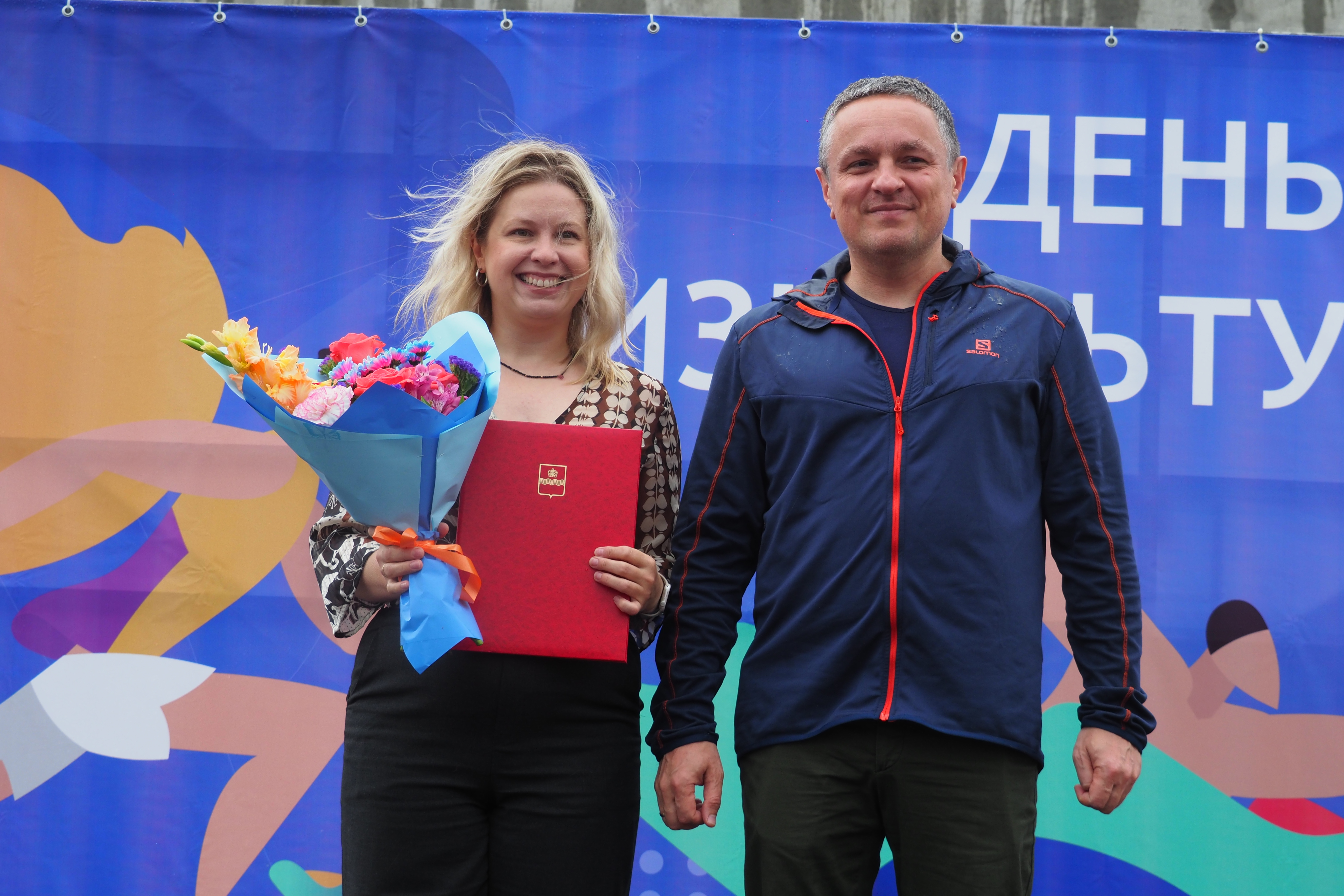 Торжественное мероприятие, посвященное празднованию Дня физкультурника, состоялось в парке Театра юного зрителя несмотря на непогоду.