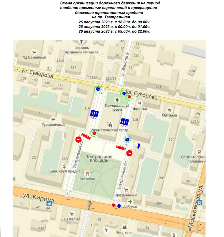 С десяти часов утра 21 августа до восьми вечера 30 августа будут перекрыты улицы Кропоткина и Гостинорядский переулок. Ограничения на этих улицах вводятся из-за фестиваля «Калуга.Улица.Еда», приуроченного ко Дню города. Он будет проходить с 24 по 27 августа.