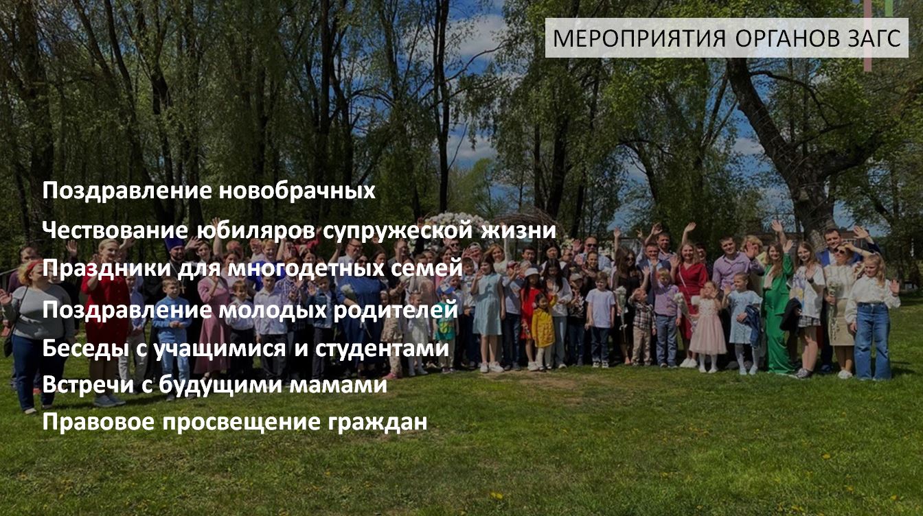 Серьезные средства направляются на поддержку материнства и детства, повышается доступность образования, медицинского обслуживания. Создаются возможности для сочетания воспитания детей и трудовой деятельности родителей. В помощь семьям внедрен механизм социального контракта, реализуются проекты, направленные на повышение статуса семьи и семейных ценностей. Активное участие в этом принимают органы ЗАГС, – сказал глава региона.