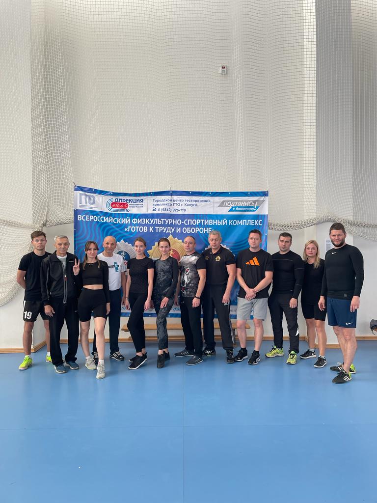 В спортивном зале МАУ "Дирекция спортивных сооружений" активные работники Акционерного общества “Научно-производственное предприятие “КАЛУЖСКИЙ ПРИБОРОСТРОИТЕЛЬНЫЙ ЗАВОД “ТАЙФУН” начали свой путь к Знаку отличия ГТО.