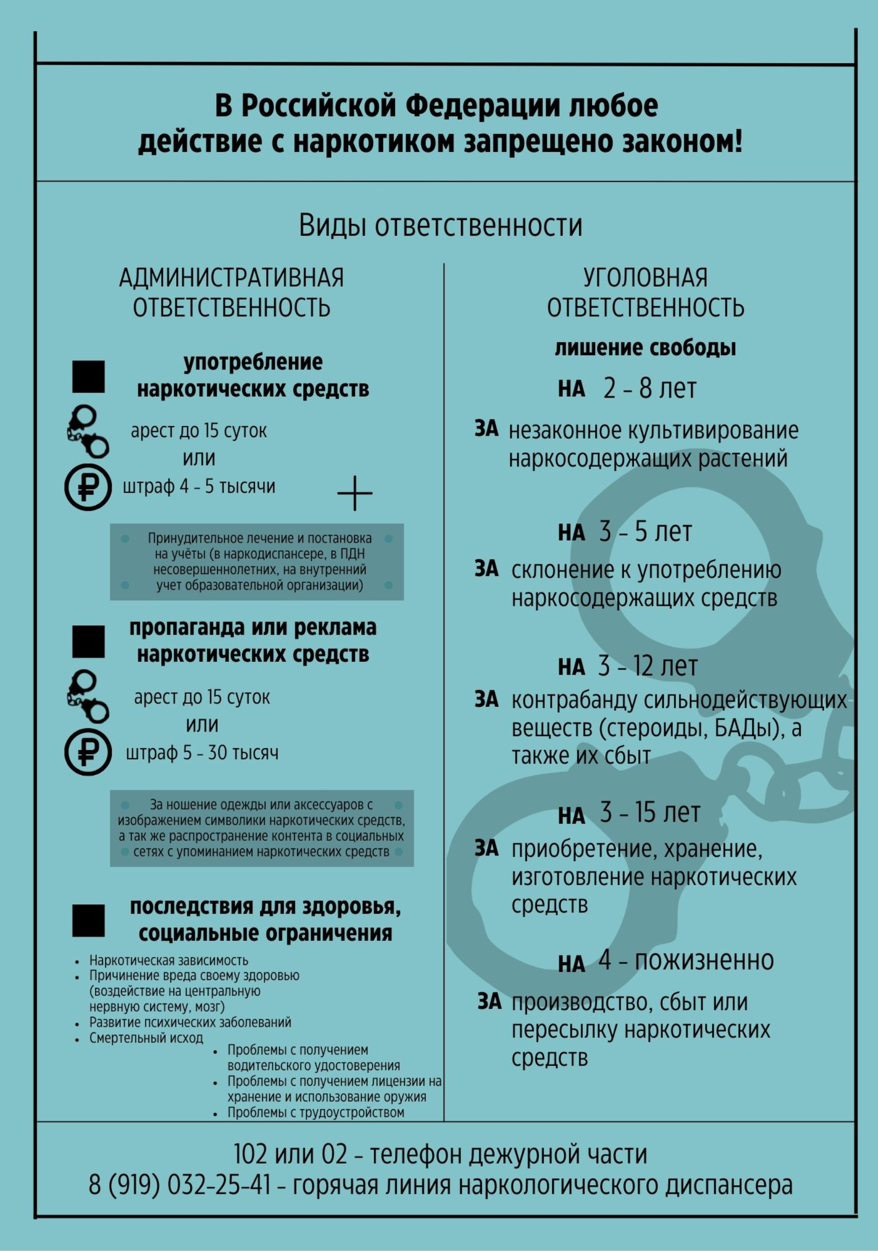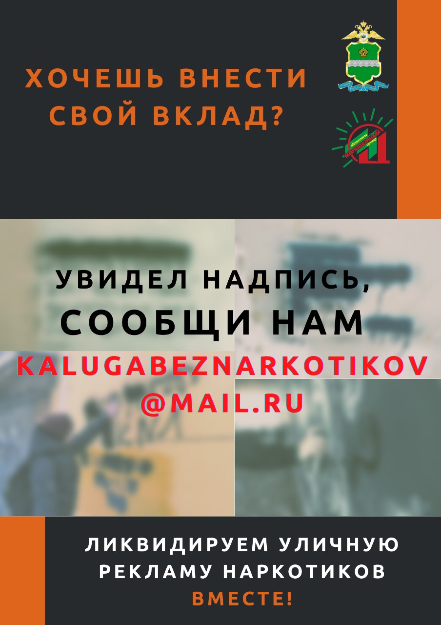 В рамках акции правоохранительные органы по номерам 102 и 02, а также по электронной почте: kalugabeznarkotikov@mail.ru будут вести прием оперативной информации от населения о фактах распространения наркотиков и интернет-сайтах, причастных к их пропаганде. Анонимность и конфиденциальность гарантируются.