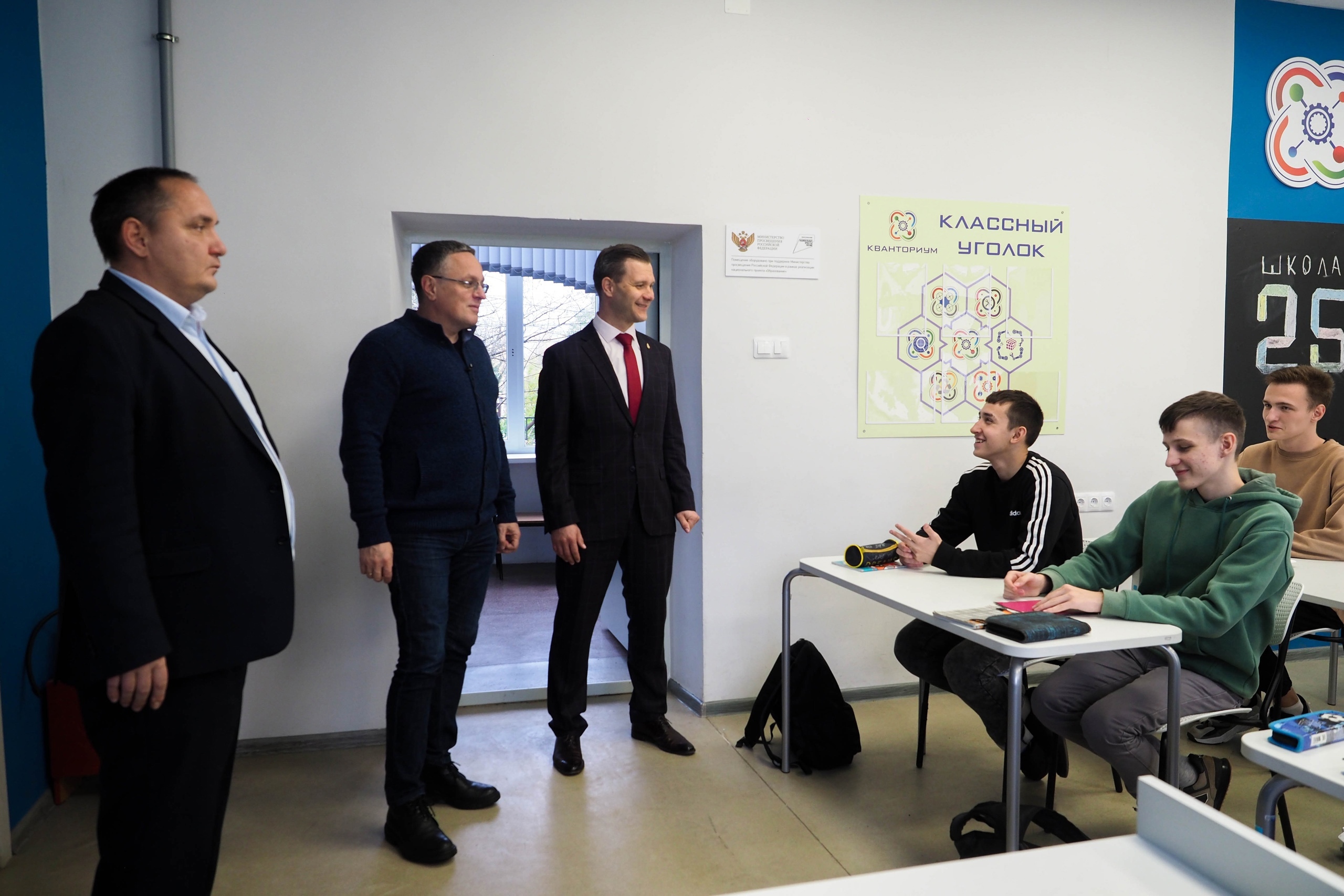 Алексей Николаевич провёл небольшую экскурсию по школе № 25. Заглянули и в кабинет физики, где градоначальник пообщался с «технической элитой» школы — будущими выпускниками и абитуриентами МГТУ им. Н.Э. Баумана. Вовсю готовятся к ЕГЭ. Ребята увлечены математикой, физикой и информатикой, посещают детский технопарк «Кванториум». Он начал свою работу в 2021 году.