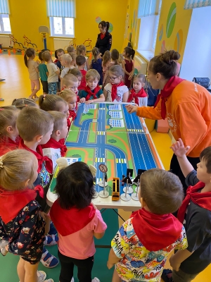 На этот раз ярко-оранжевый автомобиль Лаборатории безопасности побывал в гостях у воспитанников МБДОУ «Детство» «ЦРР» г. Калуги НСП «Карусель».