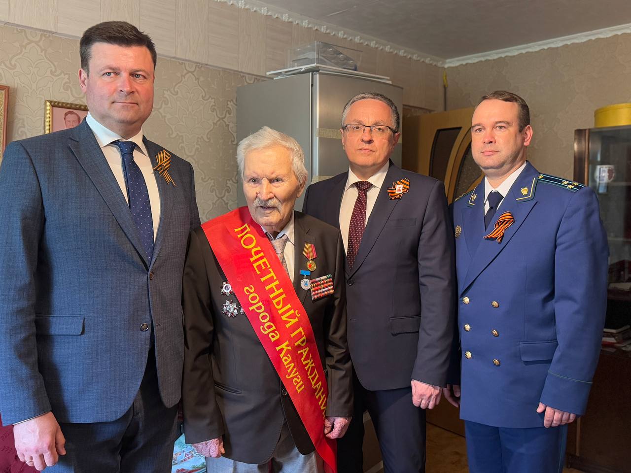 В преддверии Дня Победы Городской Голова Калуги Дмитрий Денисов вместе с Главой городского самоуправления Юрием Моисеевым и прокурором Алексеем Василенко выполняли важную миссию — поздравляли ветеранов Великой Отечественной войны с приближающейся 80-й годовщиной Великой Победы и вручали регалии "Почетный гражданин города Калуги".