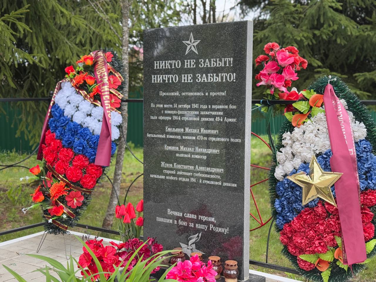 Здесь в 1941 году местными жителями были похоронены Советские офицеры 194-й стрелковой дивизии. Их имена высечены на памятнике: Михаил Никанорович Ермаков, Михаил Иванович Емельянов и Константин Александрович Жуков.
