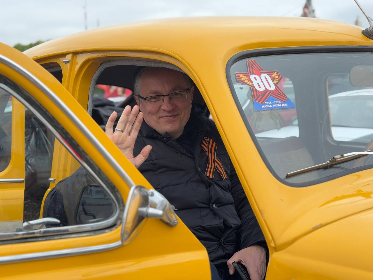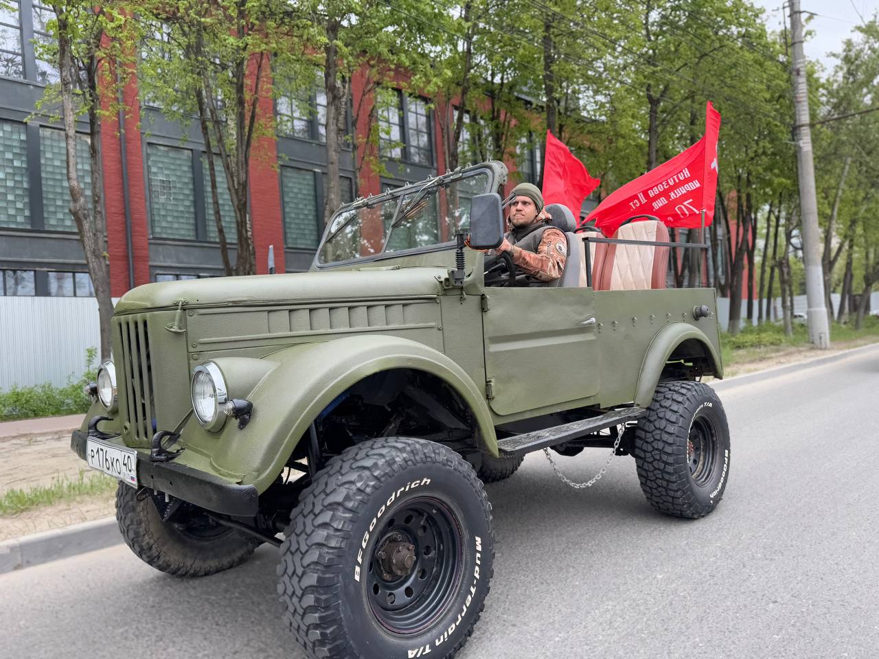 Возглавили автоколонну на легендарном автомобиль ГАЗ-69 и автомобиль «Победа» на котором были Городской Голова Калуги Дмитрий Денисов, председатель городского Совета ветеранов войны и труда Евгений Янкелевич.