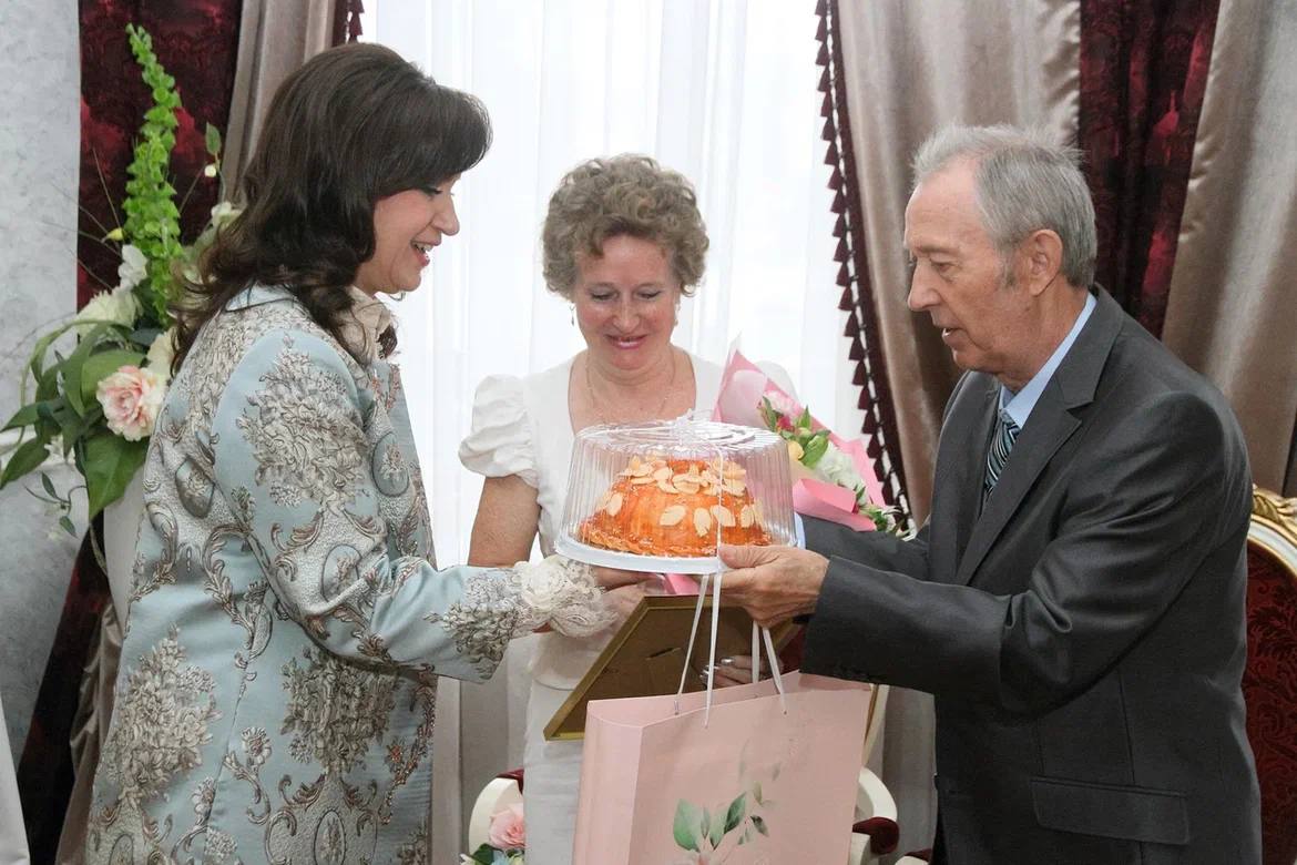 В преддверии этой знаменательной даты сегодня во Дворце торжеств Калуги чествовали золотых юбиляров, проживших 50 лет в законном браке. Среди них супруги Александр Александрович и Раиса Петровна Волковы, Василий Иванович и Антонина Ивановна Тумановы и Леонид Алексеевич и Анна Ивановна Ярош. Эти семейные пары достойны бесконечного уважения и восхищения, ведь для них слова "любовь и верность" не пустой звук. Даже спустя пять десятилетий совместной жизни они продолжают нежно заботиться друг о друге и влюблённо держаться за руки, как когда-то в счастливый день их свадьбы.